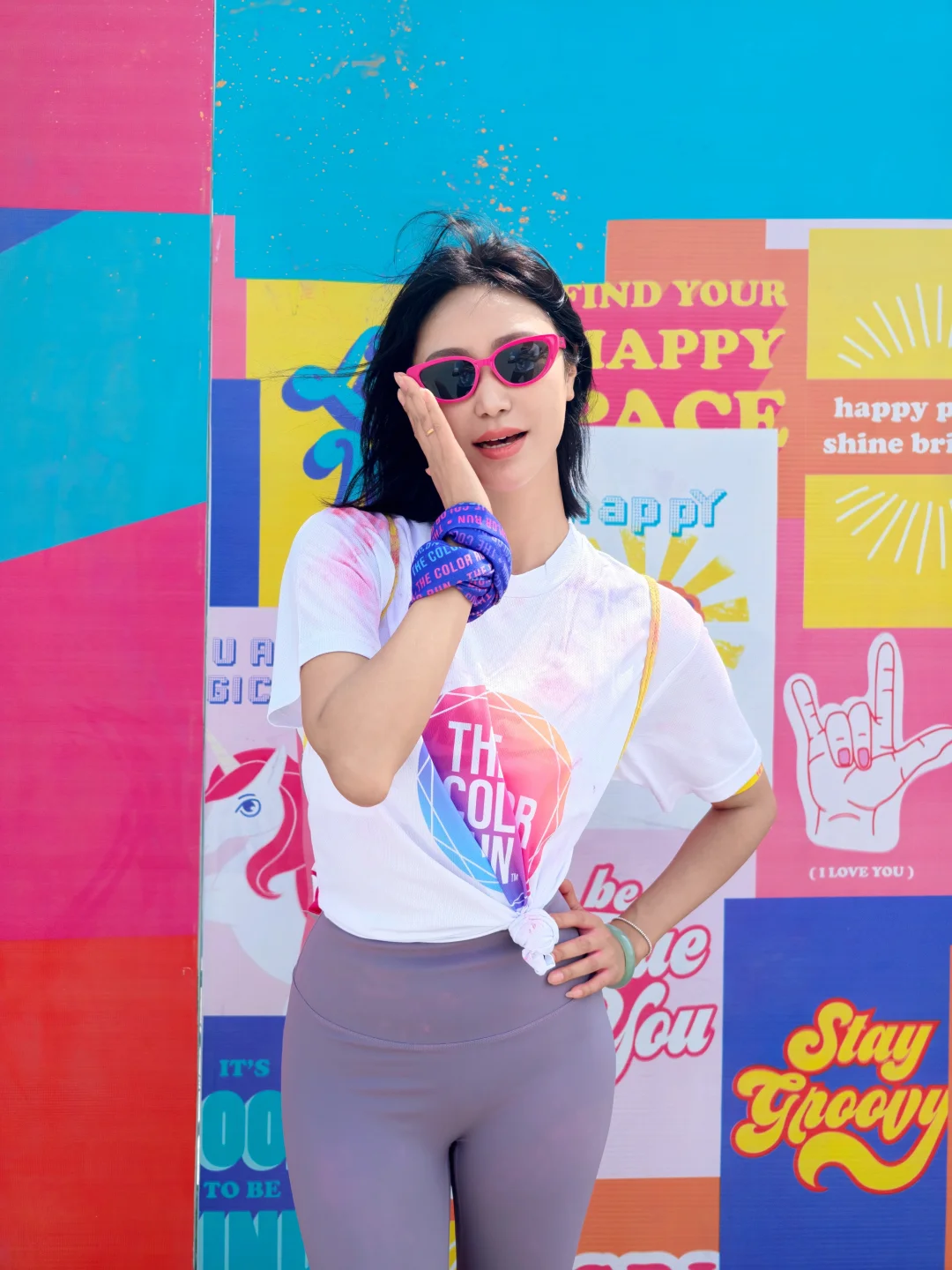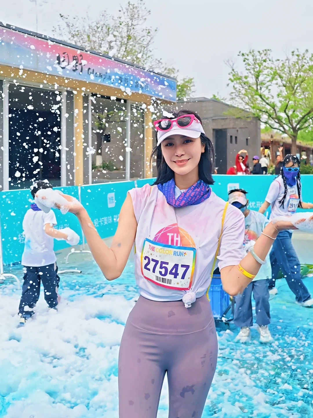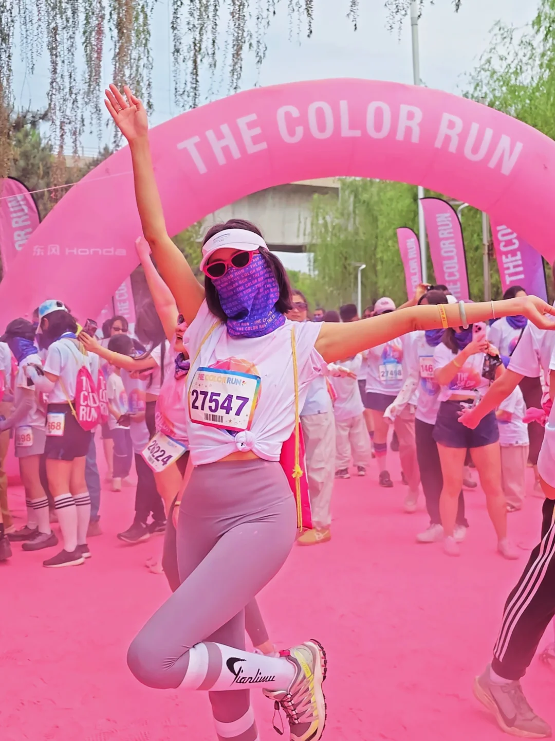 不愧是“地球上最快乐的5公里”,全程不计时、不竞速,主打一个无压力快乐参与 。沿着路线每一公里都有色彩站,粉、紫、蓝、绿色的彩粉迎面而来,从头到脚被洒满斑斓色彩,沉浸式狂欢太解压~终点直接变身“出彩”达人,随手拍都是多巴胺满满的大片!