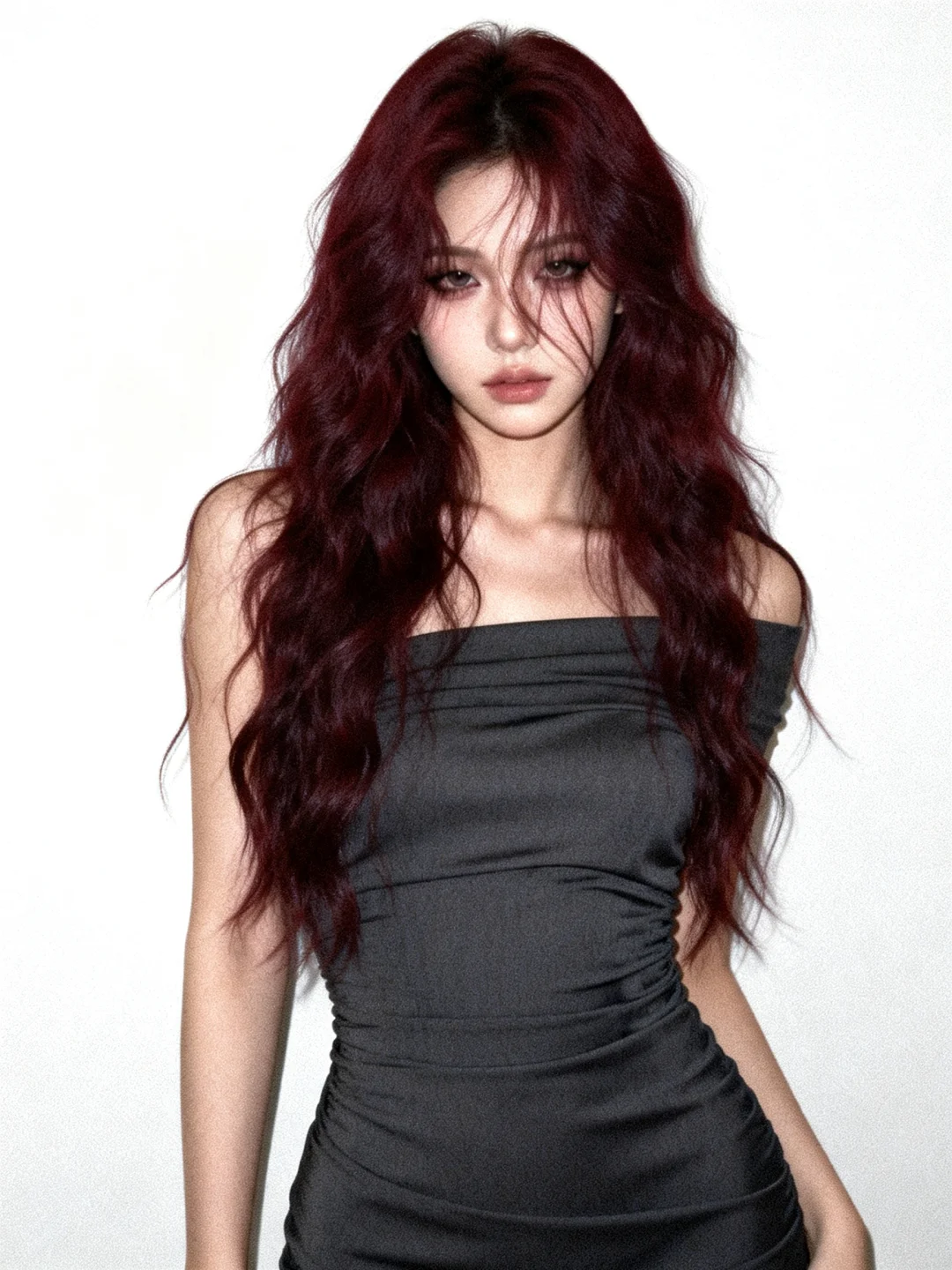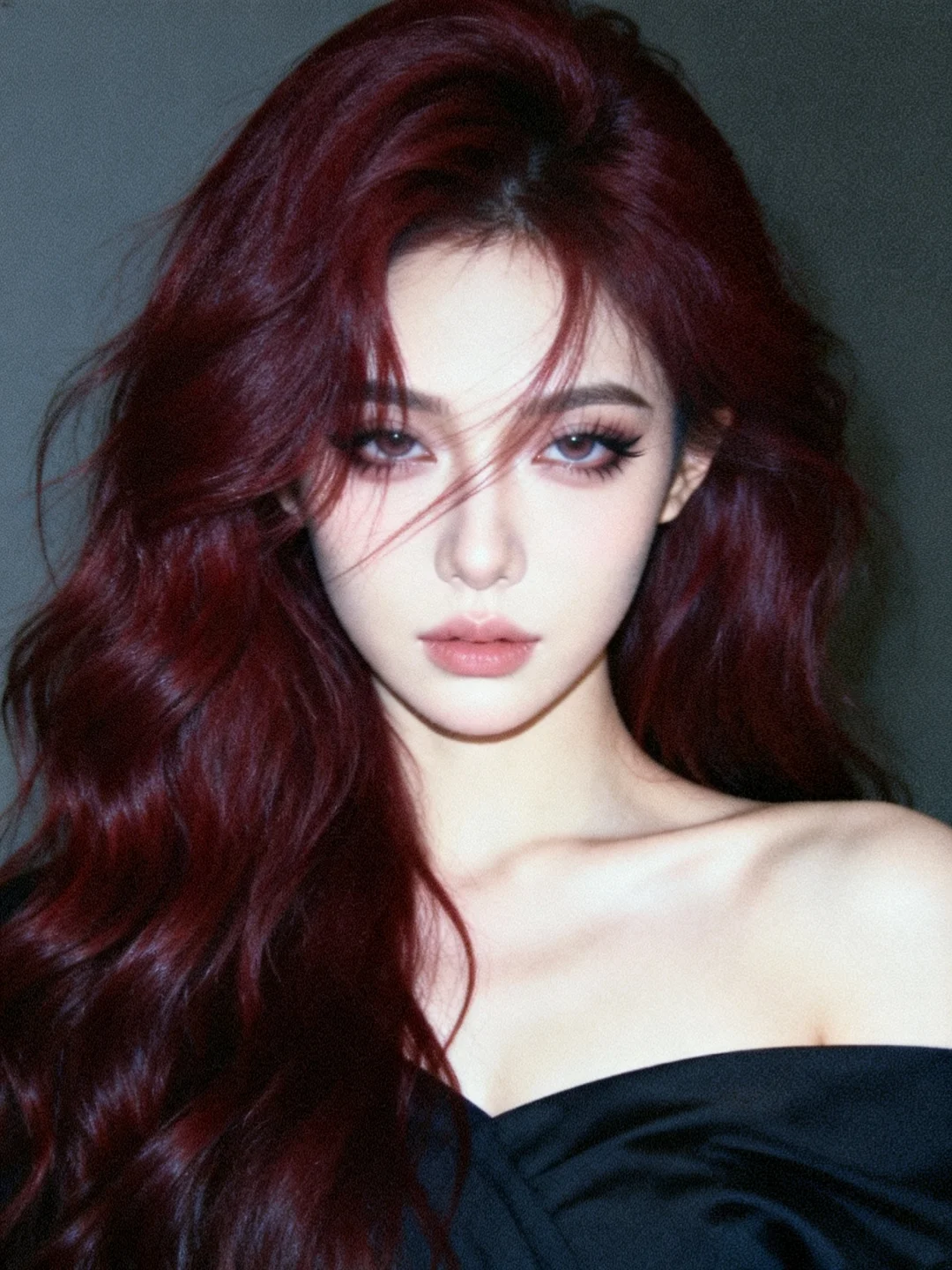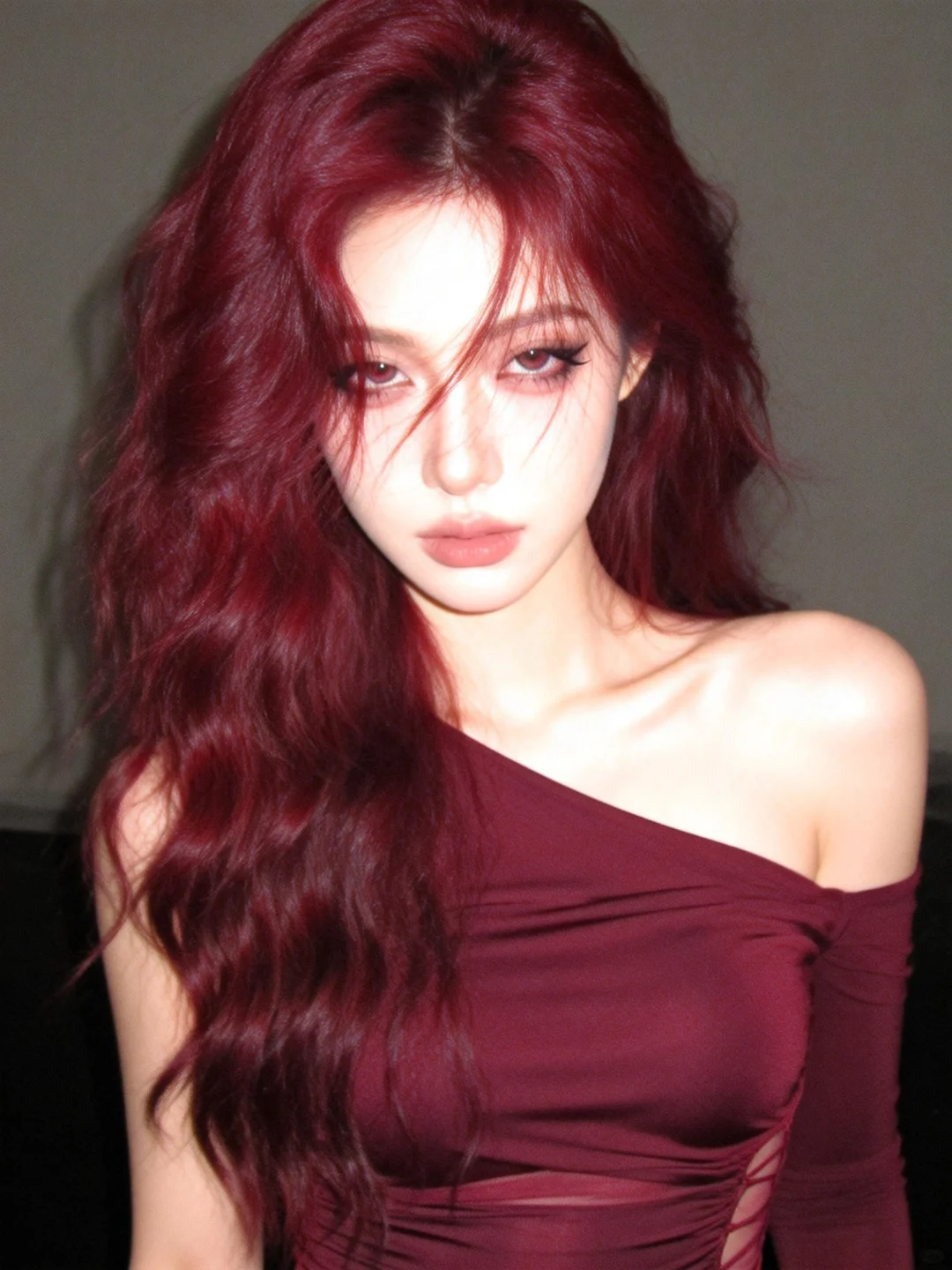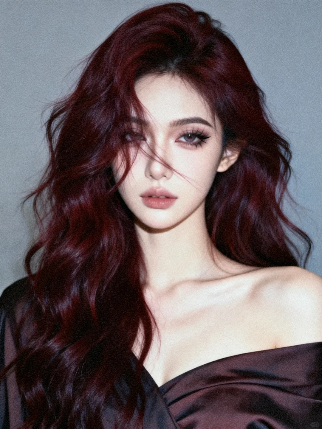 酒渍玫瑰调的大波浪在光影里舒展,像揉碎的红丝绒,带着慵懒又致命的碎感