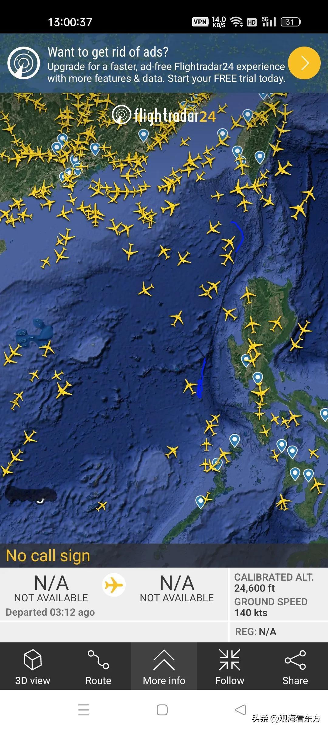 图一,根据飞行跟踪软件公开消息:一架不明国籍,不明机型的侦察机在台湾海峡徘徊后,飞往南海空域。而图二是我在南海沿着靠近菲律宾海域捕捉到的我国不明机型无人机飞行航迹,大概率是军用无人机。图一,等着看看是否会有官方媒体报道。