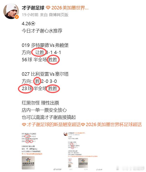 公推拿下每日⚽再次拿下019 多特蒙德Vs弗赖堡 半场开香槟 胜胜 让胜 纳入囊中027比利亚雷Vs塞尔塔 3球 胜胜 稳如老狗公推切尔西也是没有问题,期待一下曼城切尔西会师足总杯决赛2026美加墨世界杯足球才子谢足球的斯是陋室