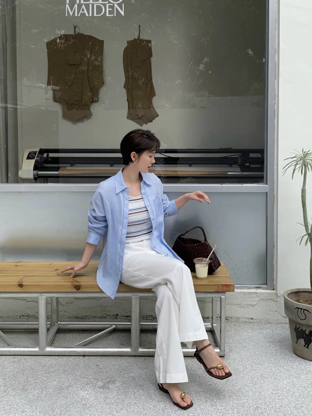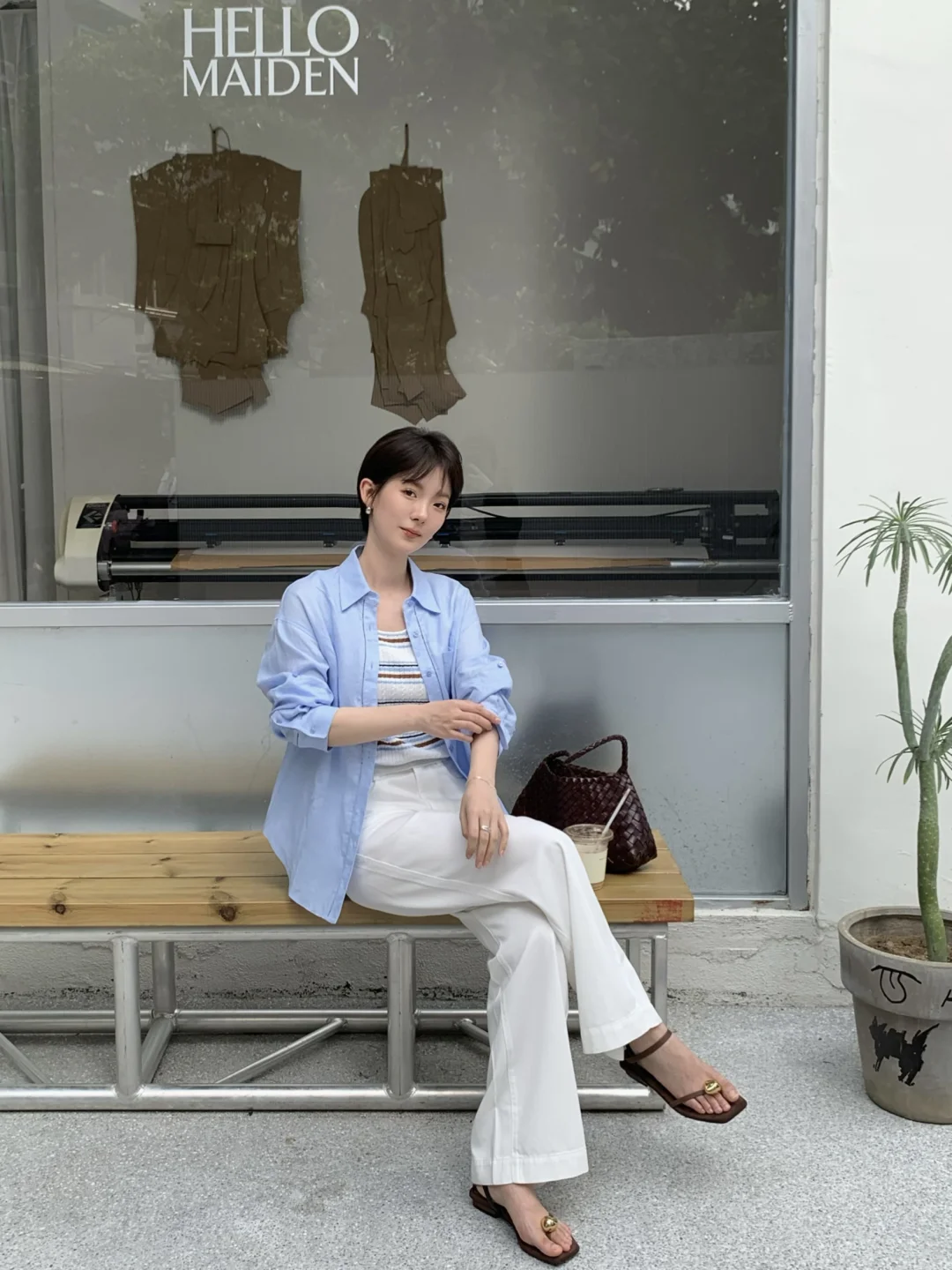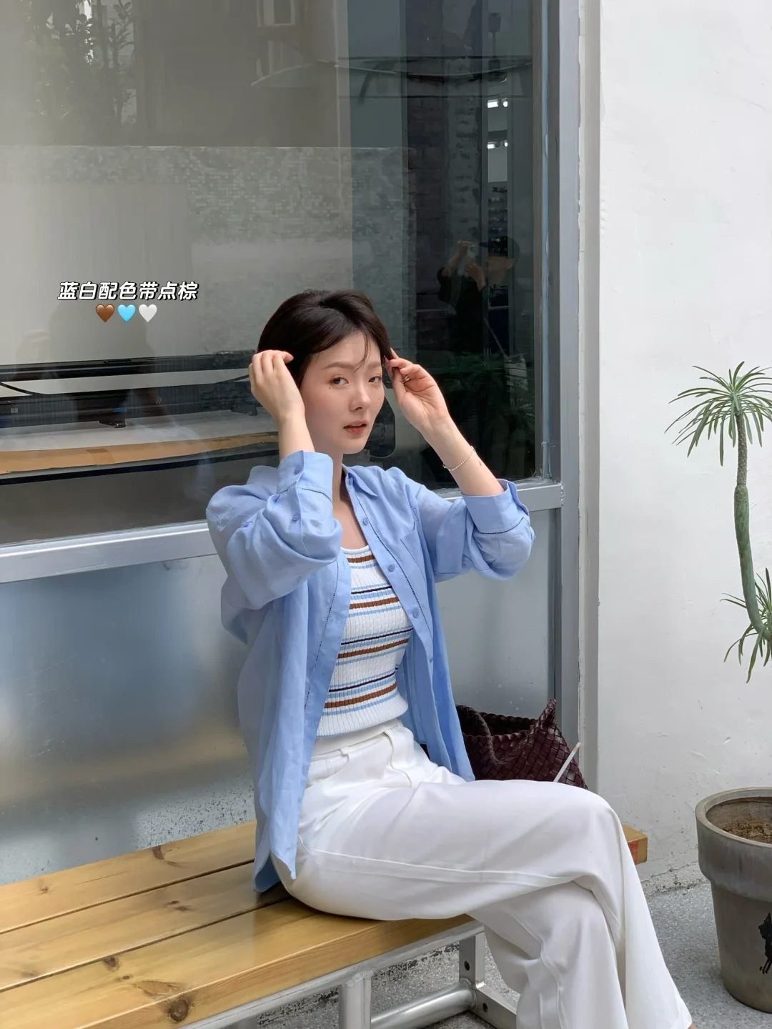 清新简约风穿搭,白色衬衫+短裙,优雅又减龄!💕