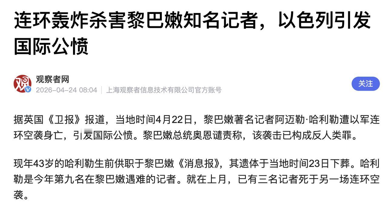 以色列用行动证明,他们要摧毁的不仅是记者的生命,更是真相传播的渠道。