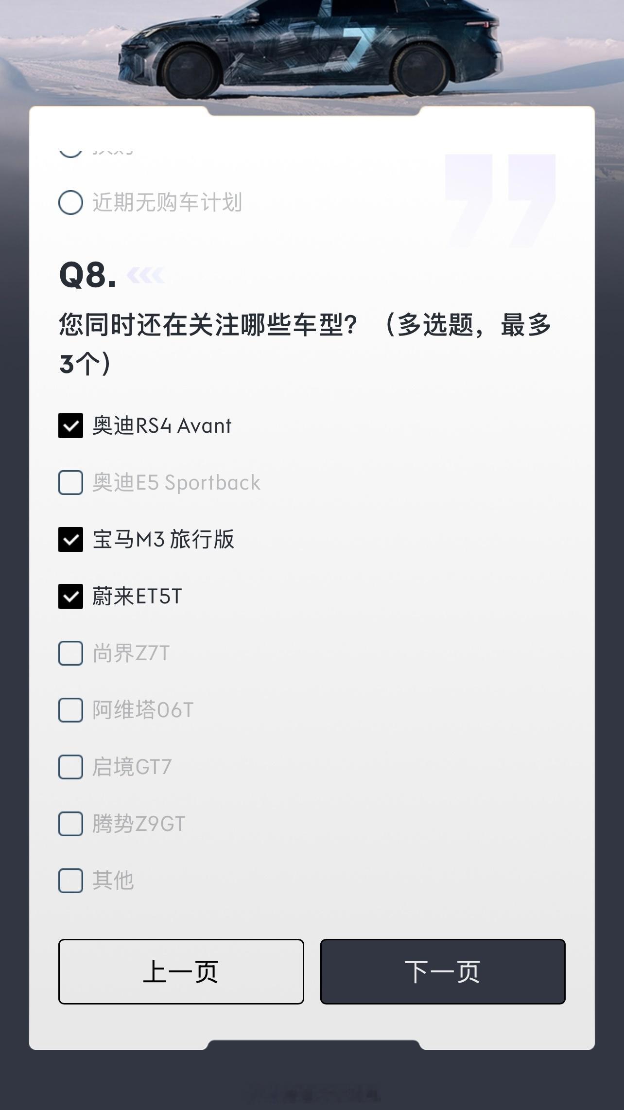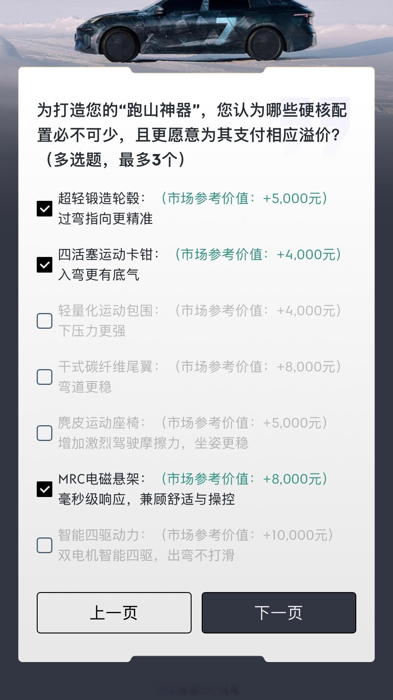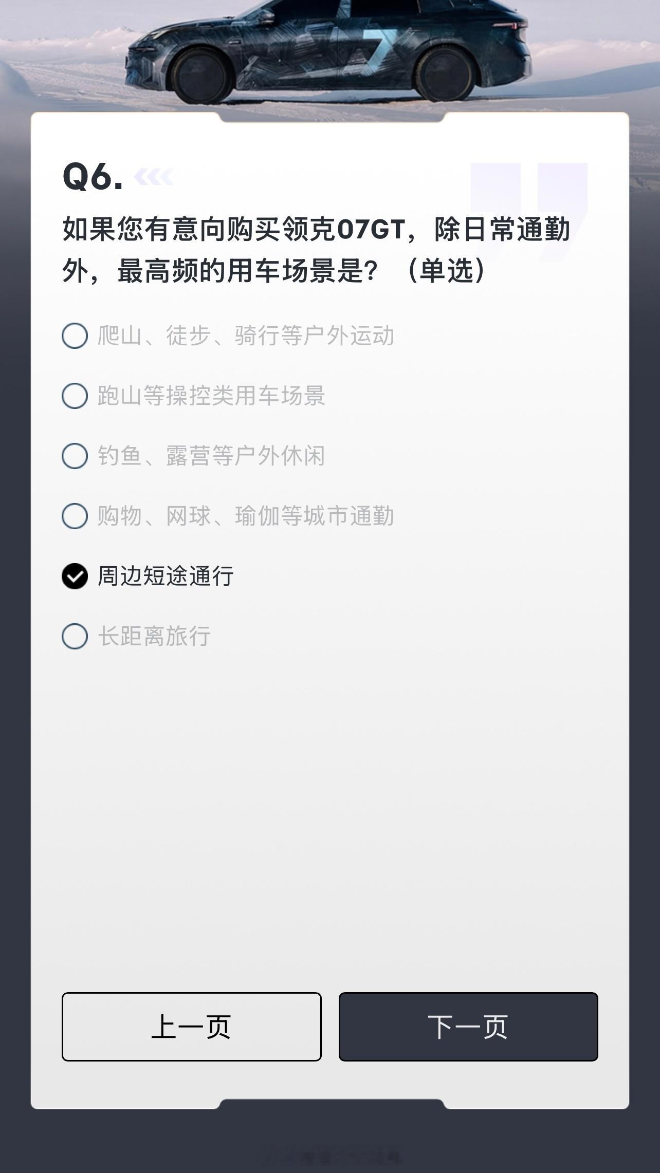 领克07gt 在App上发了份名为问卷,实为送1000购车抵用券并简单透露些配置的调查,内容见图。MRC电磁悬架的出现是偶然吗至于锻造轮毂、四活塞卡钳、运动包围、碳纤维尾翼、运动座椅、四驱,在07GT身上会意外吗好难猜啊,毕竟你们知道我是一个什么都不知道的人领克 杭州·杭州极氪大厦