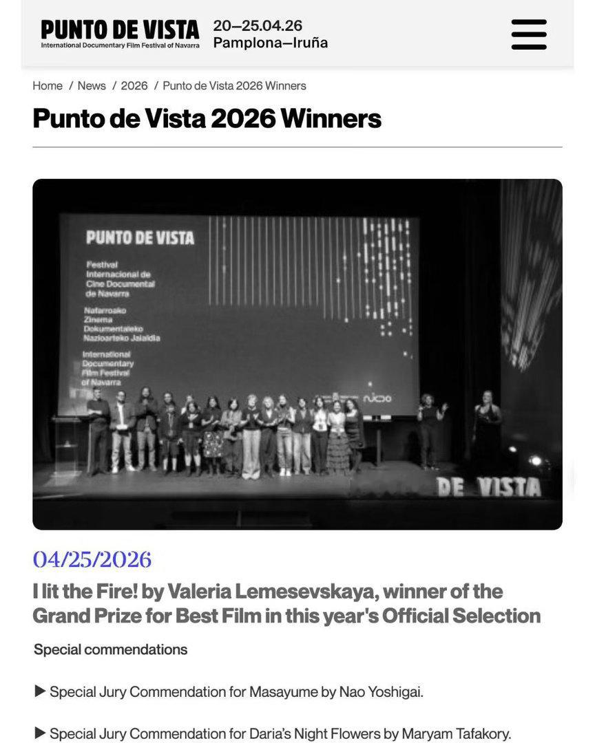 puntodevista2026 恭喜导演吉开菜央的首作《正梦》荣获纳瓦拉国际纪录片电影节评审团特别提及,该片还入围了今年柏林电影节论坛单元!