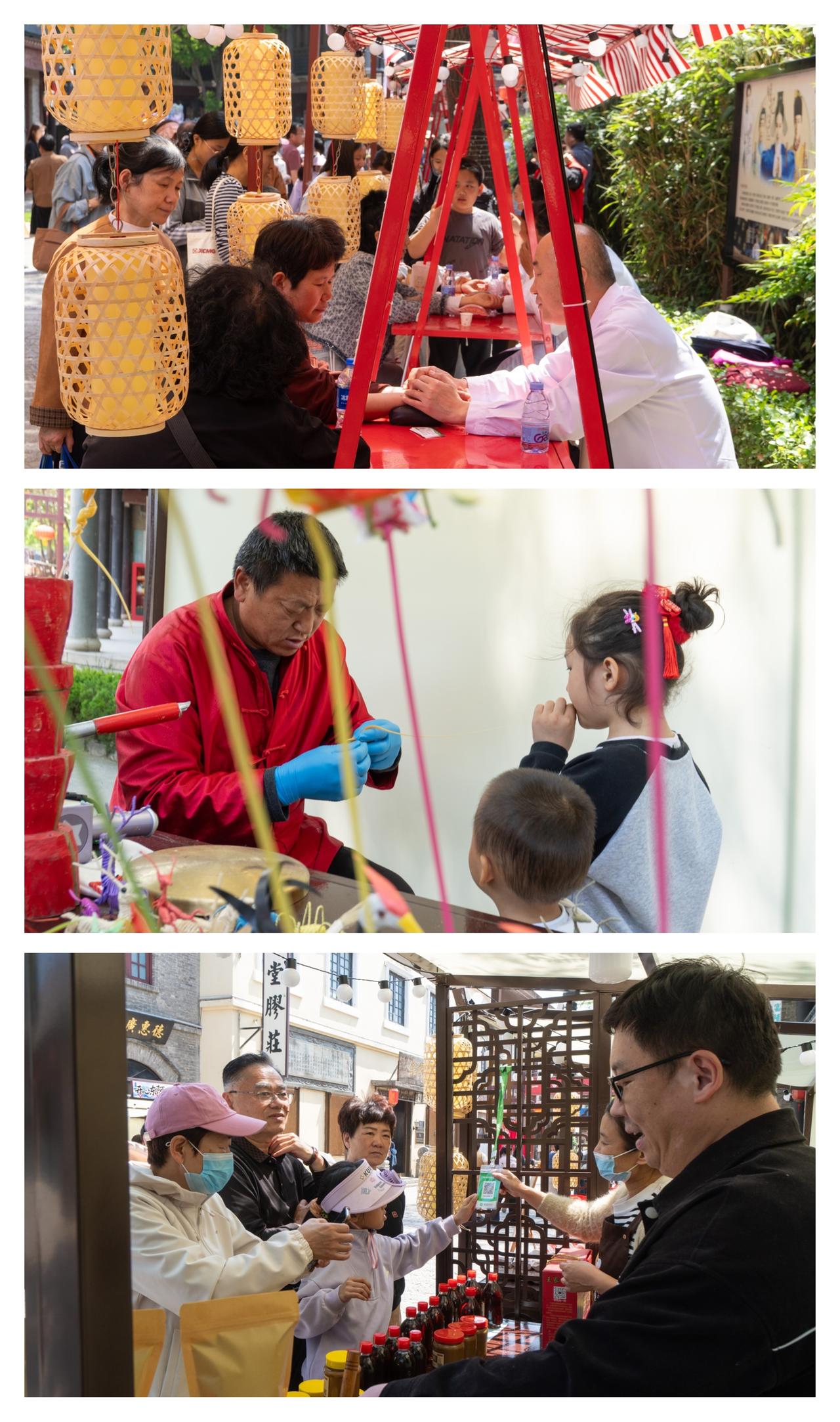 期间,开心东阿国潮市集也应约开集!30+摊位一站式打卡,30个非遗特色摊位云集,有曹州合香、手工吹糖人等非遗手作,也有阿胶糕等特色小吃。