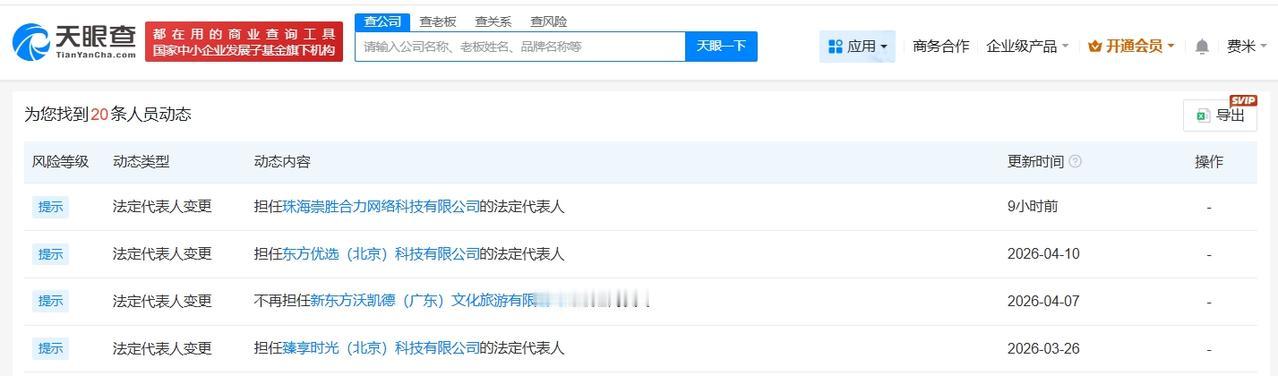 天眼查App显示,孙进名下关联20余家企业,包括广州市新东方文化艺术发展有限公司、海南新东方教育培训中心有限公司等,孙进在上述企业担任法定代表人、董事长等职位,值得一提的是,今年以来,孙进已接手了东方优选(北京)科技有限公司、珠海崇胜合力网络科技有限公司、臻享时光(北京)科技有限公司。
