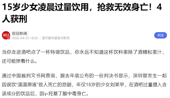 遗憾的是,经过医护人员全力抢救,依旧没能挽回这个 15 岁女孩的生命。后续法医鉴定结果明确显示,女孩的死亡原因,正是γ- 羟基丁酸中毒。