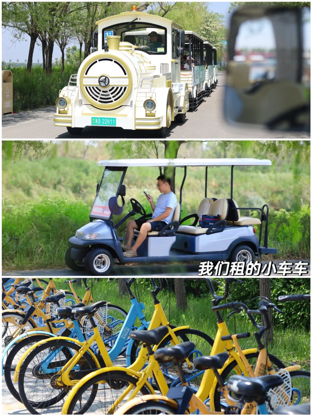 ✅ 园内交通:🆓小火车、共享单车,也可租电瓶车逛园超轻松!
