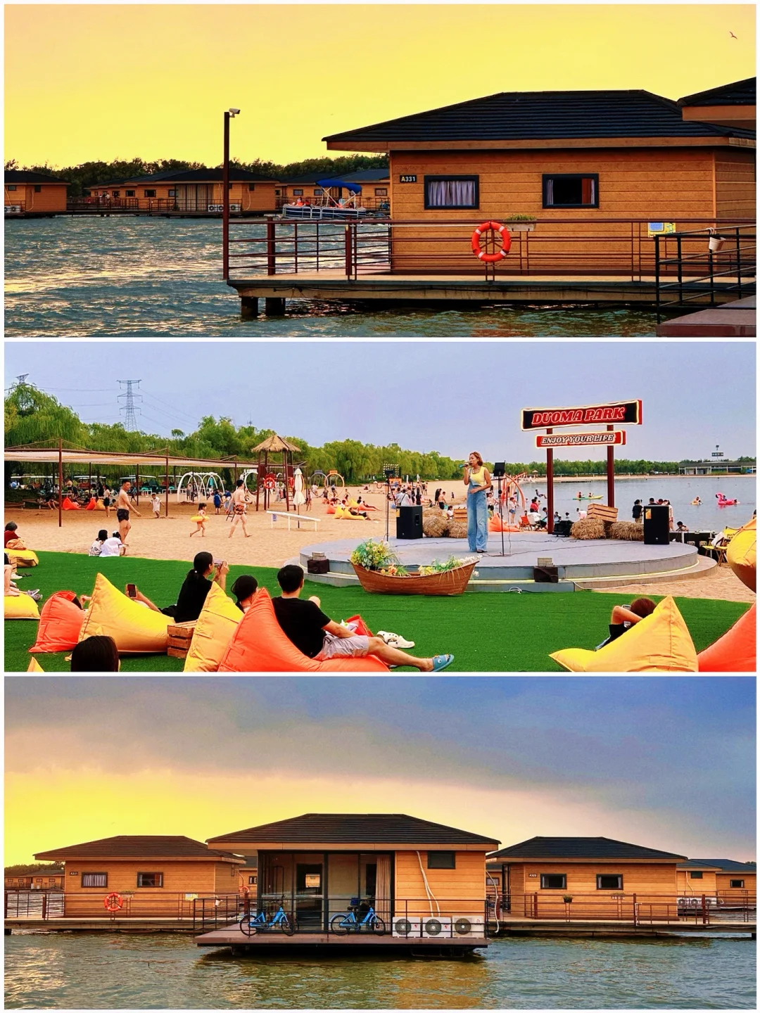 🏖️ 蓝湾浴场:人造沙滩+日落音乐会,看一场海边日落,很浪漫