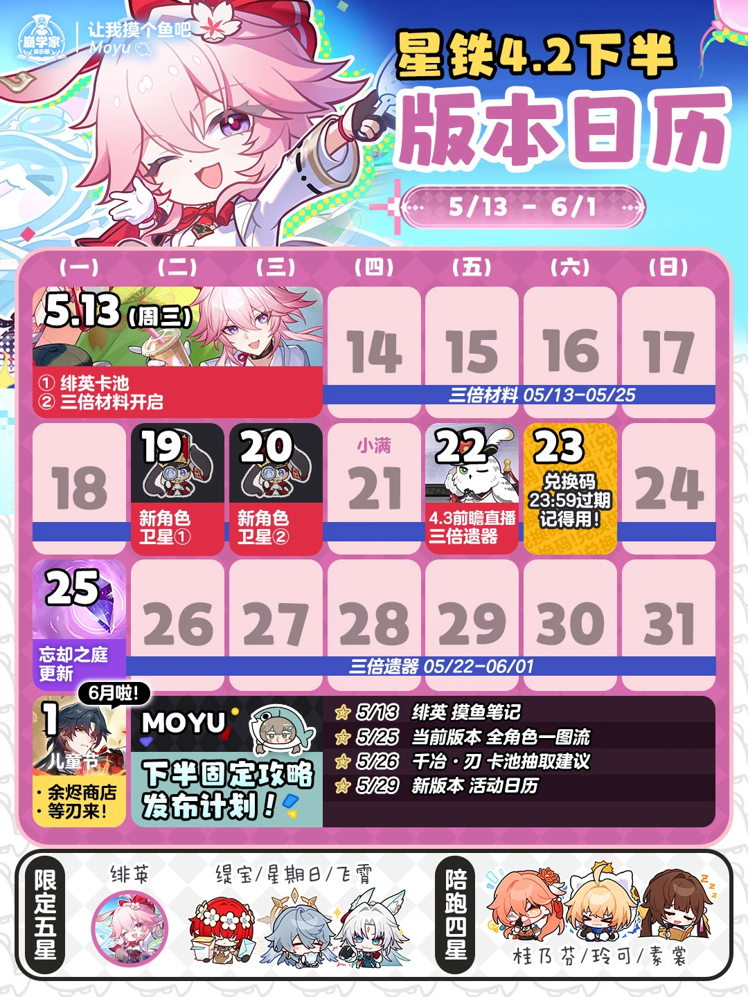 马上开新卡池了,帮大家总结了4.2整个版本的各种活动排期!