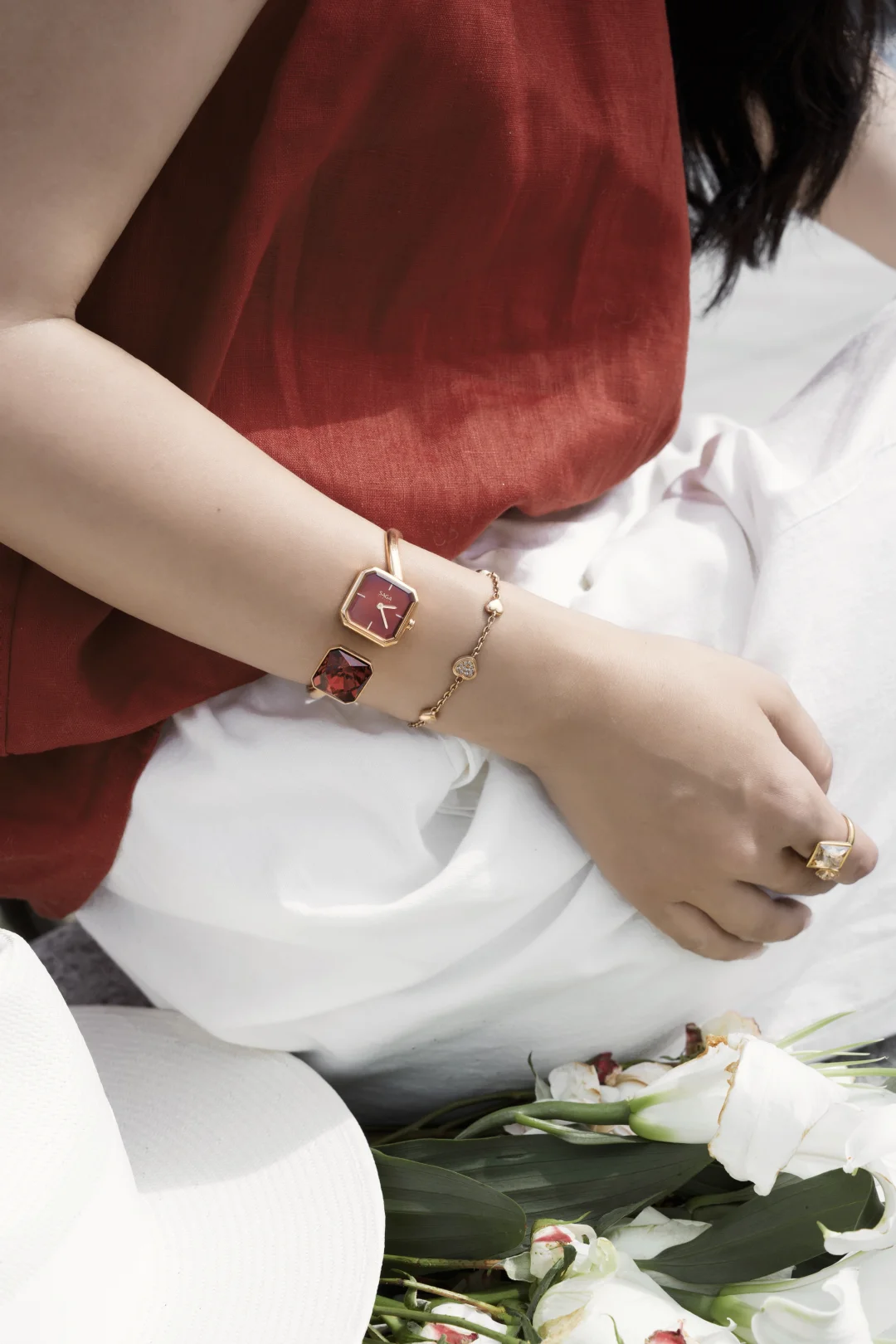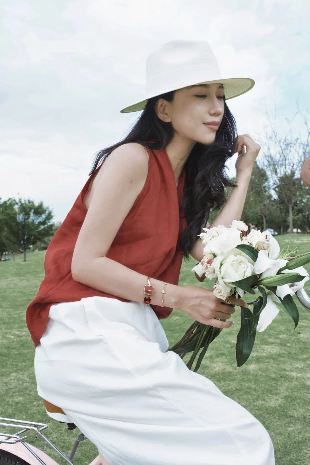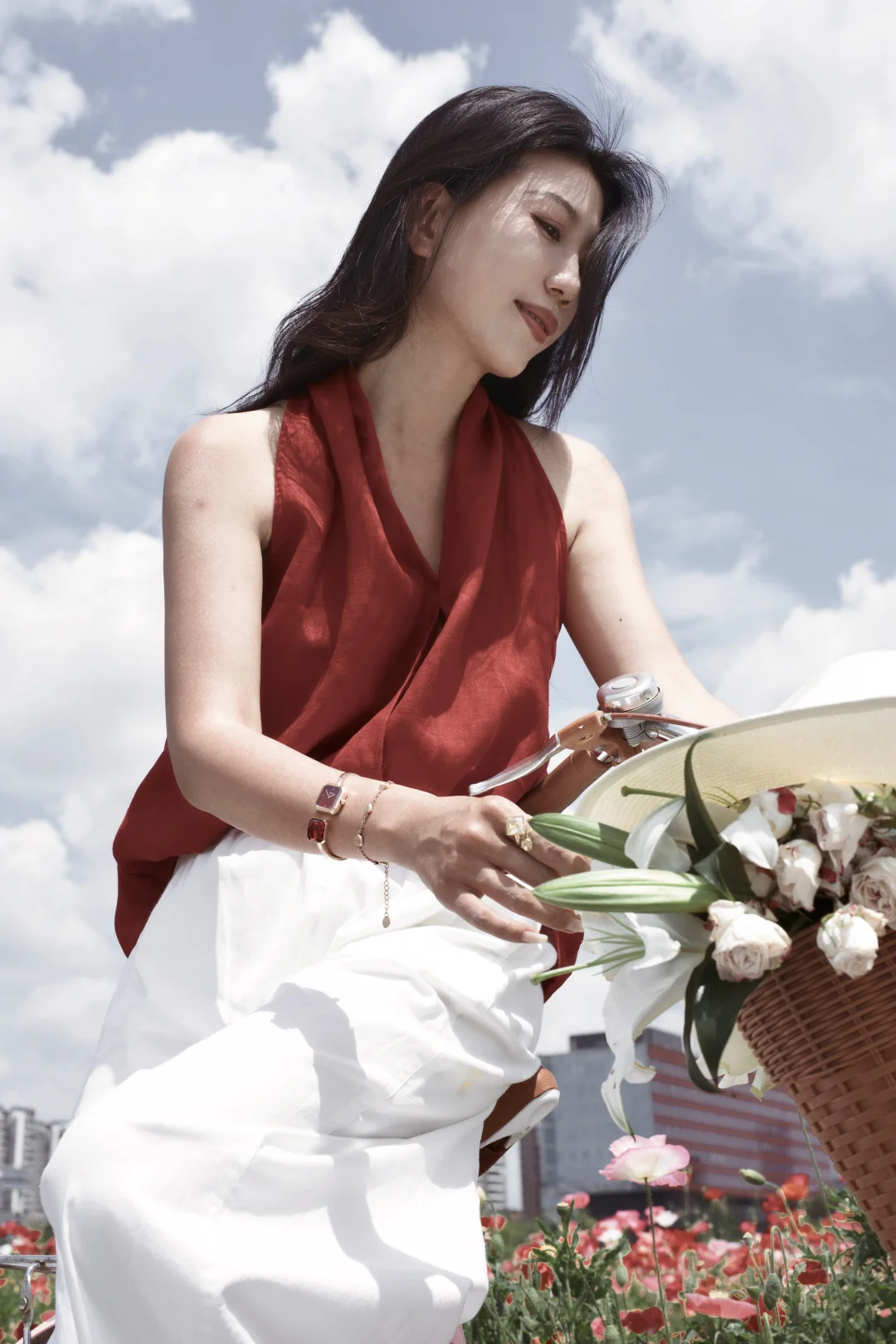 红与白的松弛穿搭,适配所有出行场景。腕间的SAGA手镯表,以马蒂斯红八角形表盘为韵,热烈又高级;旺多姆之光的造型别致灵动,金框勾勒出优雅轮廓,与细链叠戴,温柔中藏着力量。
