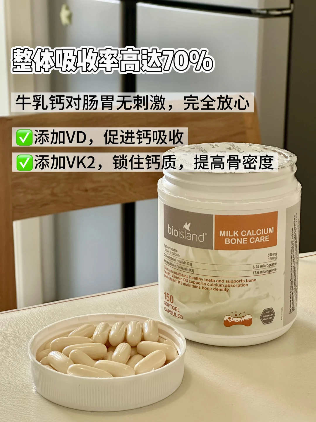 羟基铃酸钙:不需要太多胃酸参与,吸收率碳酸钙和葡萄糖酸钙的2.5倍,加上它的钙含量看似相比其他钙含量有些低,但这并非是缺点,侧面表现出它更温和安全,适合日常缓和补益。和其他钙来比,Bio乳钙不是人工合成的,而是从天然牛乳里提取,这种牛乳钙不会损伤肠胃。它里面含有维生素D3和维生素K2,D3促进钙吸收,锁住钙质,提高骨密度,从中医角度看钙的存量=肾精充盈度的物质基础,整体Bio Island乳钙很温和,源自澳洲原装,很适合孕期。这款Bio Island成人乳钙可以直接在山姆APP下单,跨境产品渠道会更有保障靠谱,线下部分门店也有样品展出,宝妈,补钙人群可以放入。