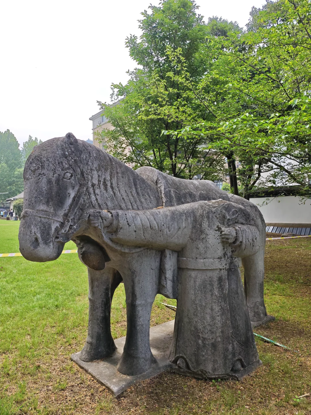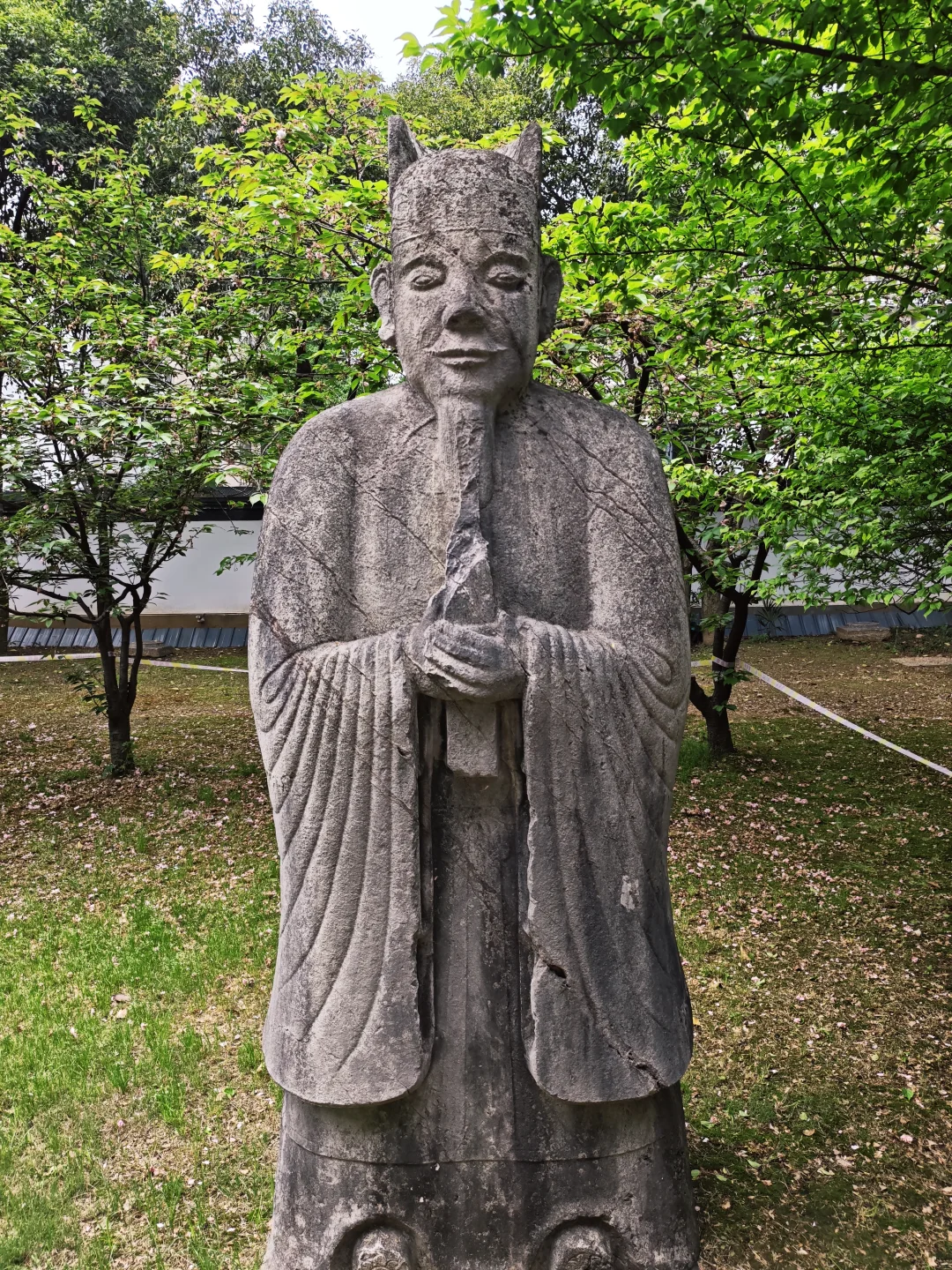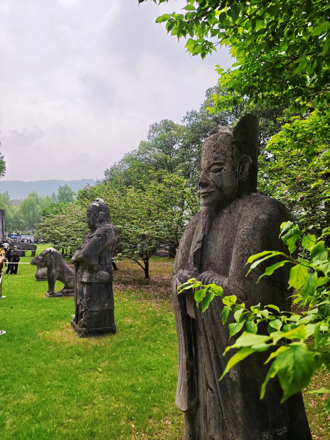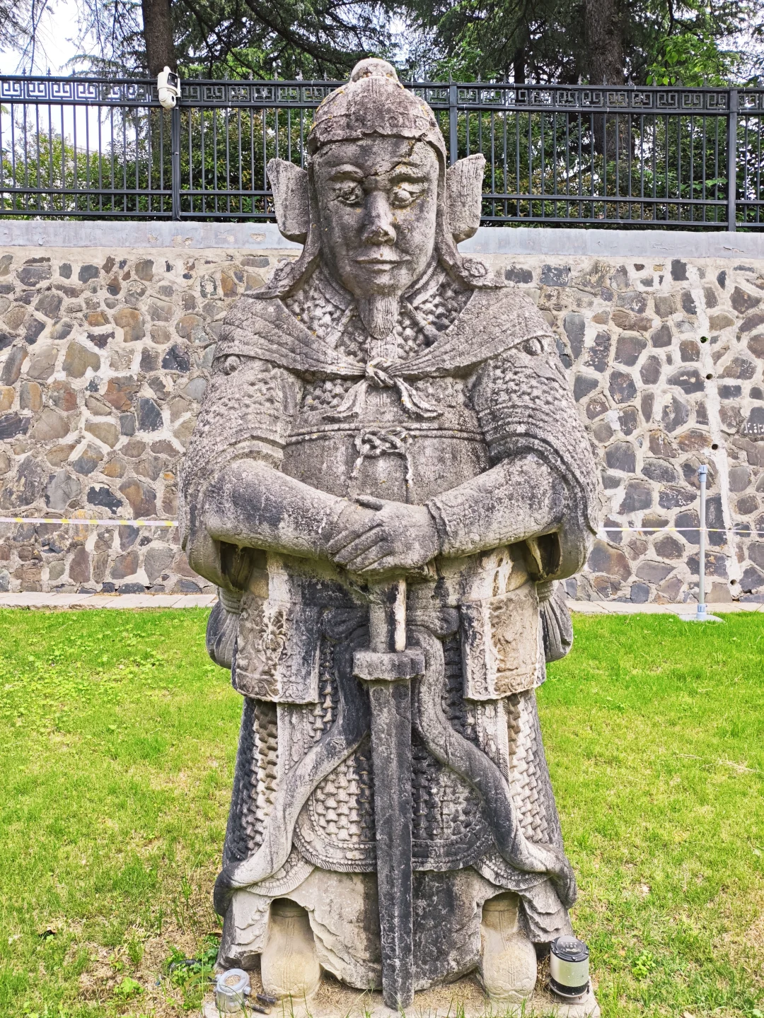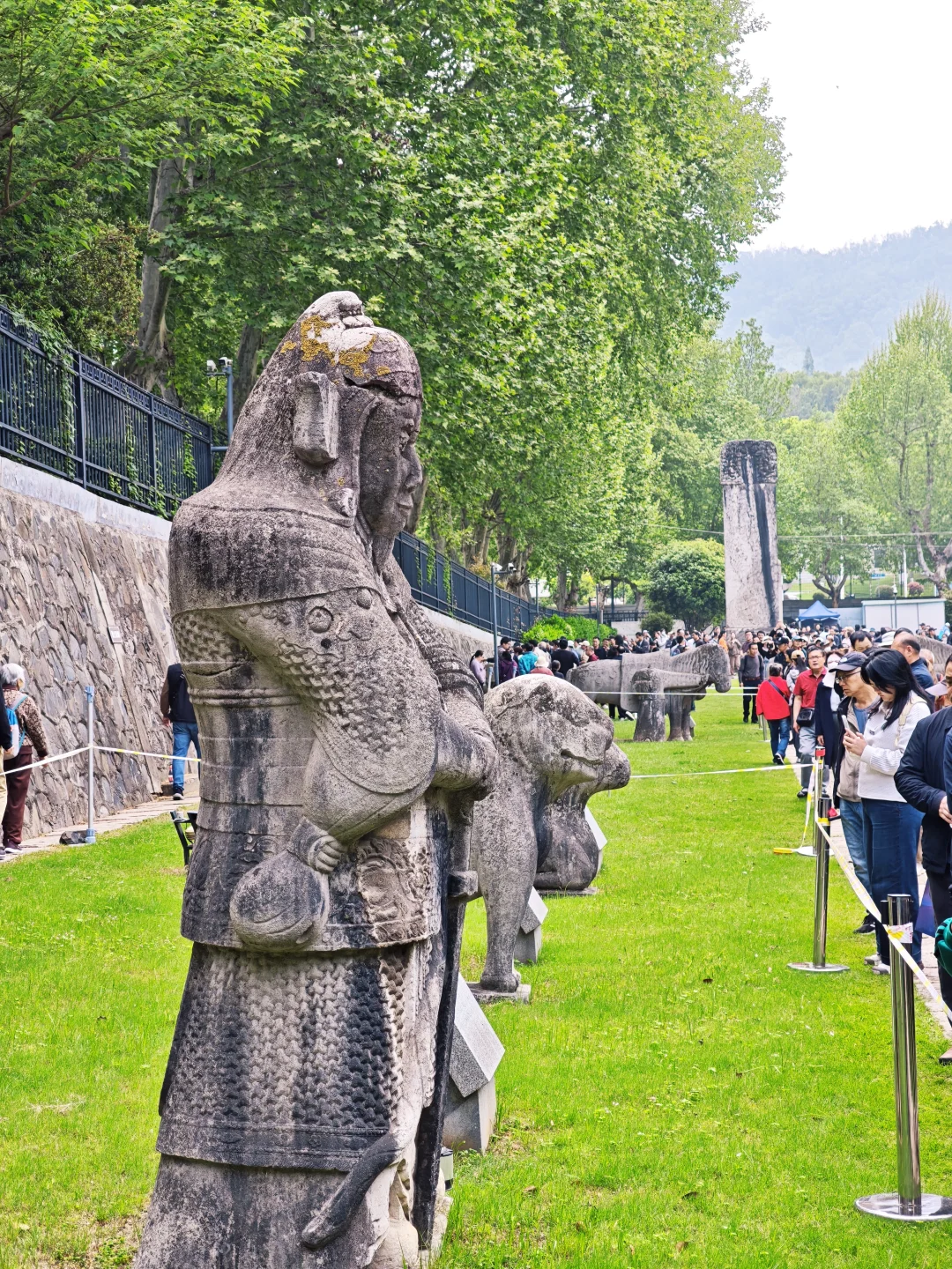 🗿徐达墓墓园规制宏伟,坐北朝南,面对钟山。入口处立“明中山王神道”牌坊,神道长约300米,牌坊后为神道石刻,现尚存神道碑1块,石马、石羊、石虎、武士、文臣各1对,墓前的巨碑“御制中山王神道碑”是明代功臣墓中⬆️大最有代表性的一块~