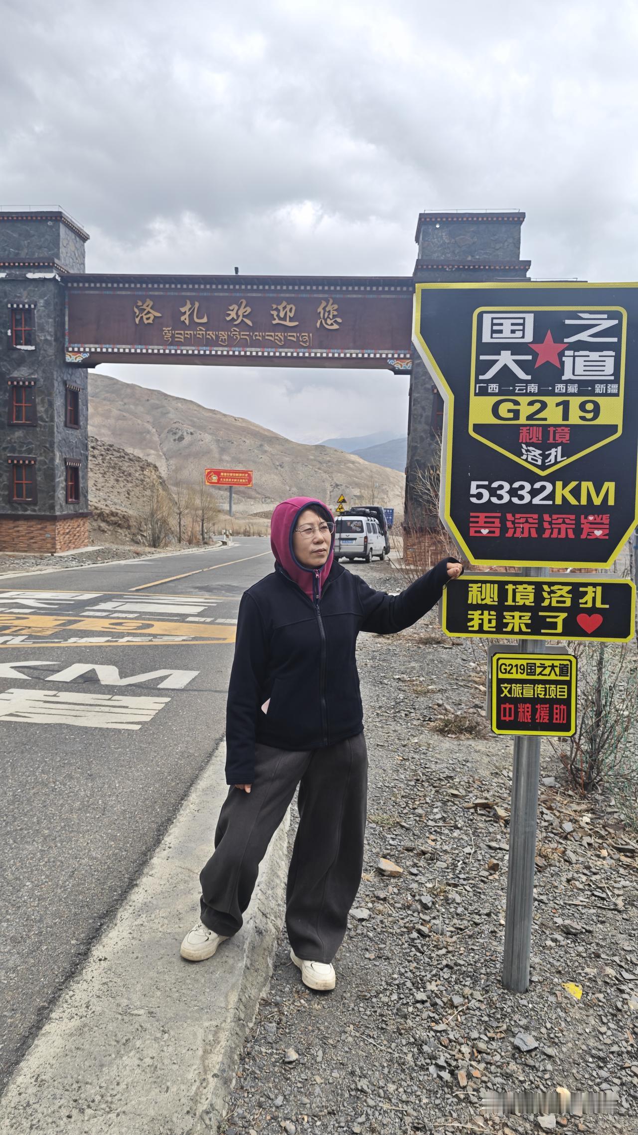 十几公里后又开始爬山,从3800一直上到4431m的雄拉牙口。开始下山,到达洛扎县境,就是5332国道路牌。这里搞了一些标志。
