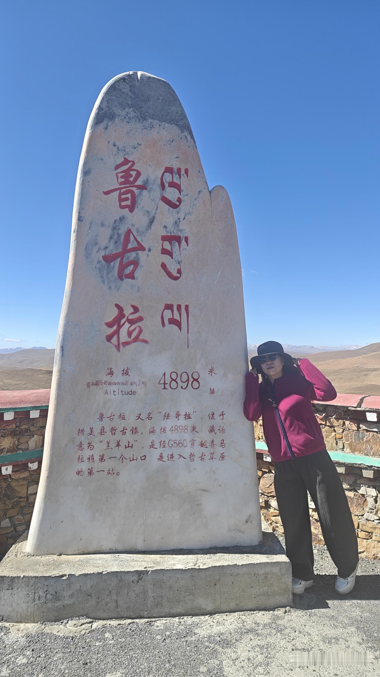 之后继续沿国道560向南。在333路碑打卡。国道挂在峡谷一侧,谷底是奔腾的章曲河。翻越一个不太高的山口,叫鲁古拉山口,海拔4857m。之后一路向下到哲古错的格措。过折古镇之后,是广阔的大草原。路也平直了很多。可以开到100多码。
