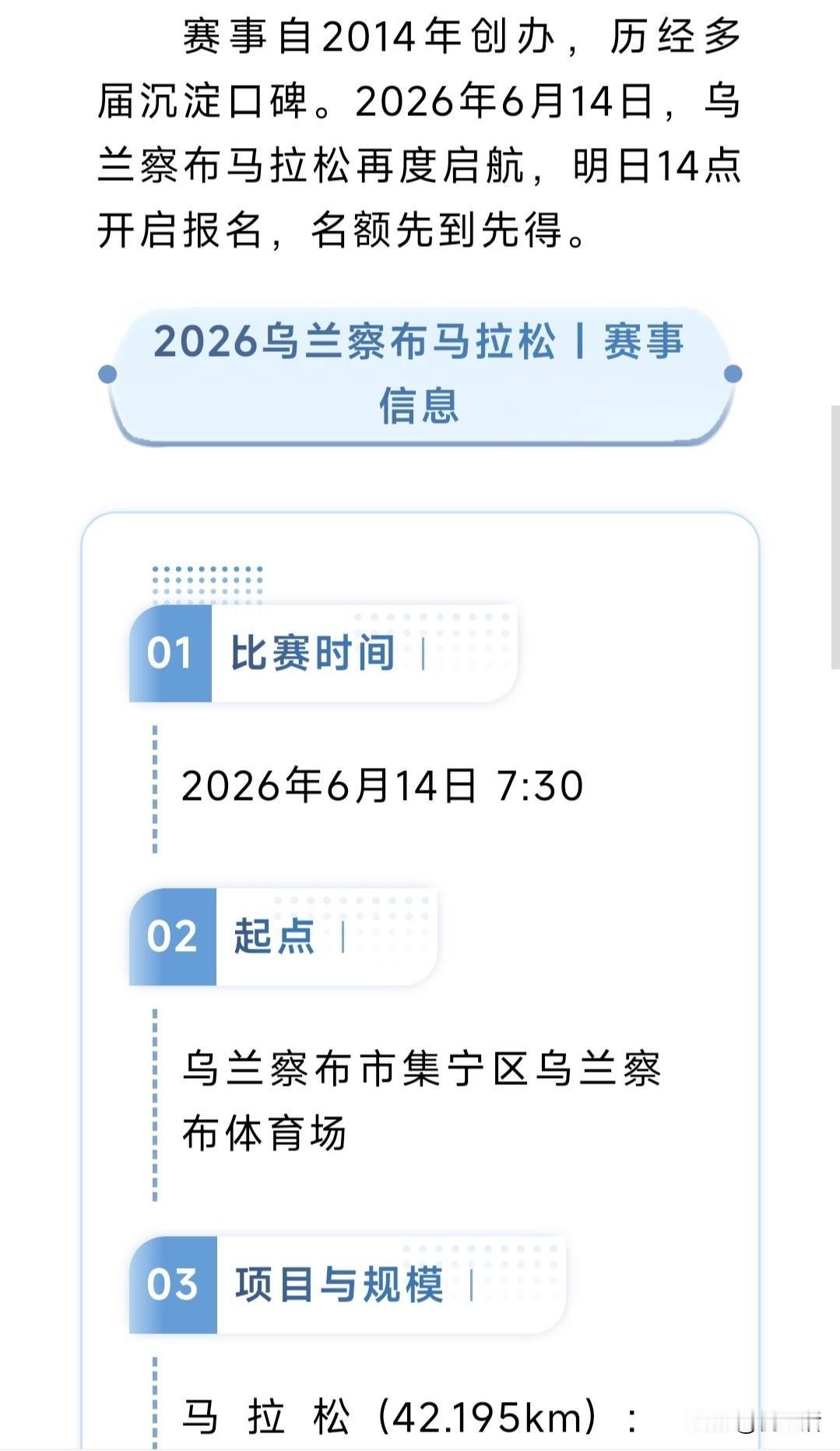 2026乌兰察布马拉松,明日14:00开启报名