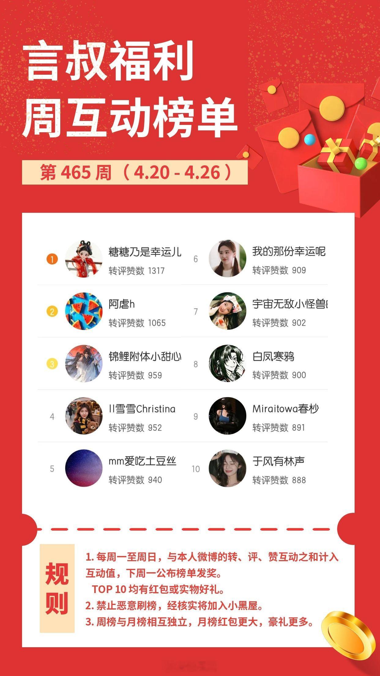 【周互动】第 465 周(4.20 ~ 4.26)榜单公示