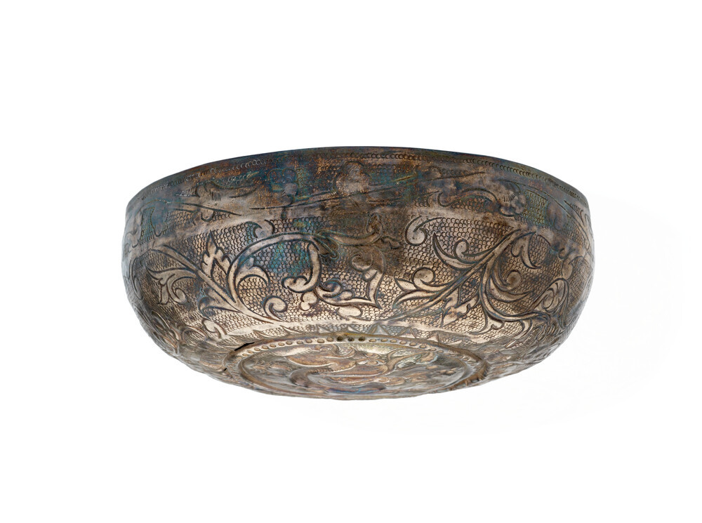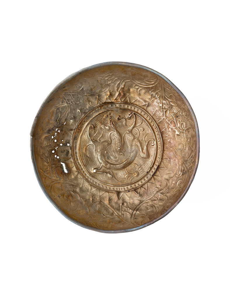 牛津大学阿斯莫兰美术馆藏宋代的银鎏金缠枝龙纹碗。底部有龙和水族纹饰