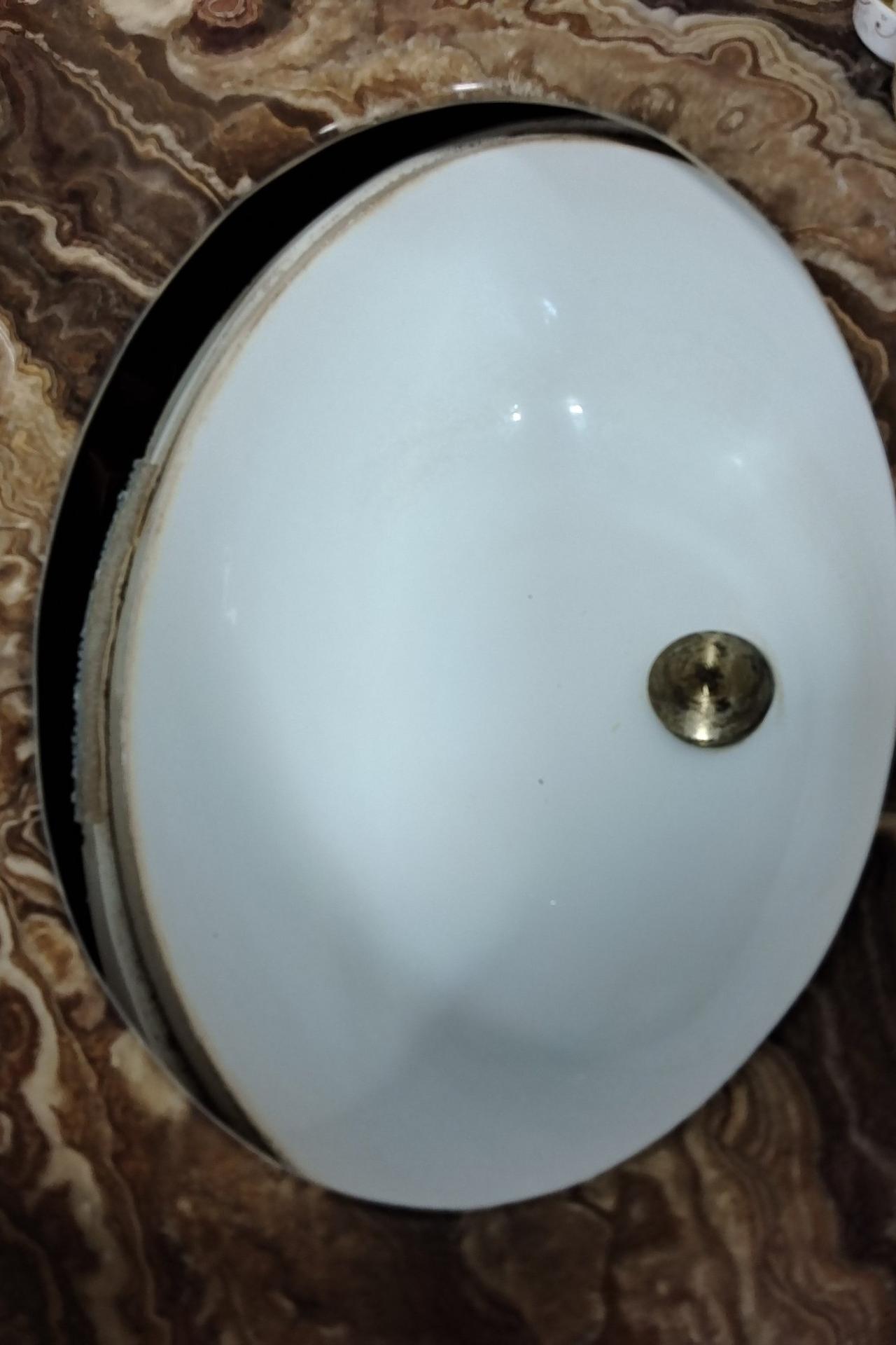 晚上洗漱的时候,不知道怎么回事,只听到“咚”的一声,洗手盆掉下去了,把我吓了一大跳,我试图用手把它扶上来,它不但没有上来,还比之前更掉下去一截。