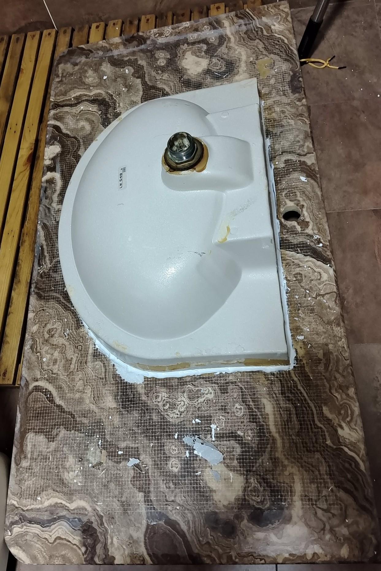 中午的时候,小董来修洗手盆了,先打了一管胶,不够用,又开车出去再买了两管胶来,都打上了,最后还是没有粘上,不知道什么原因,那胶一倒出来就干了,根本粘不住。