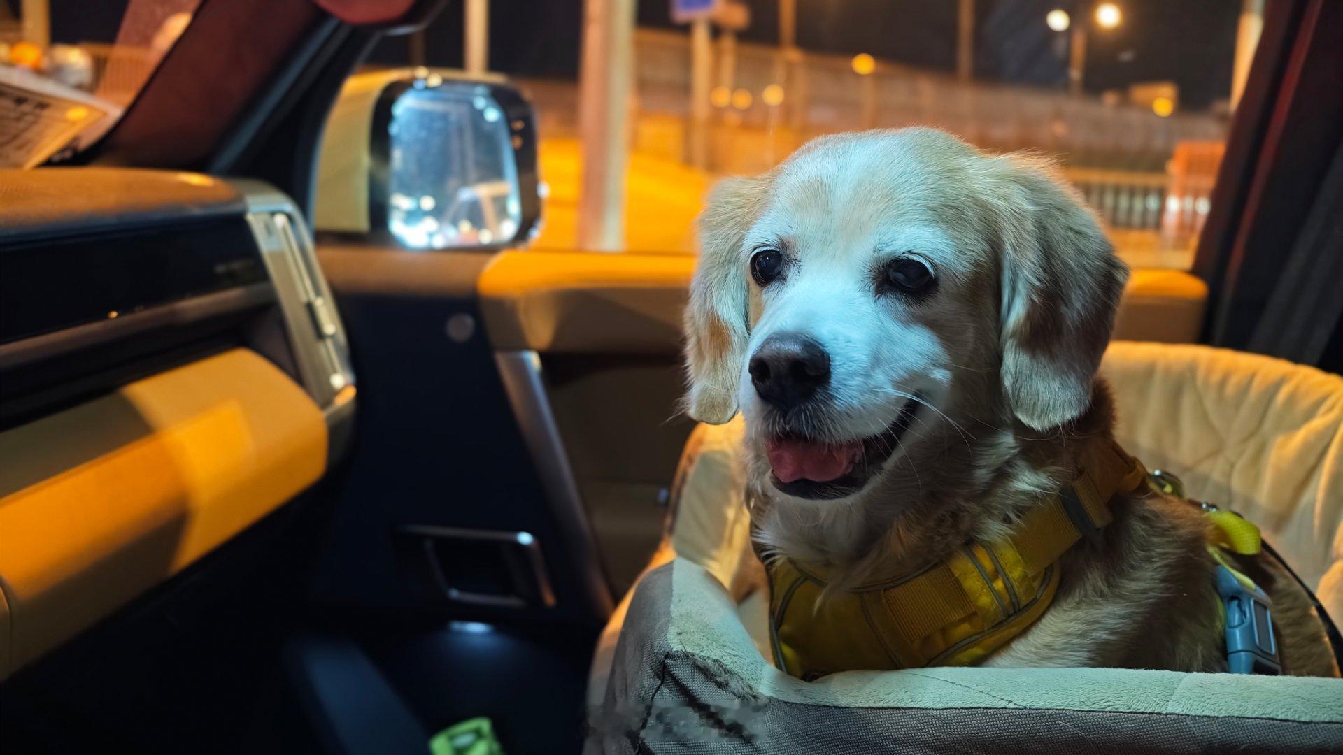 小可坐V27,这个车视野高!时睦华的iCAR V27时哥大女儿小可(狗)