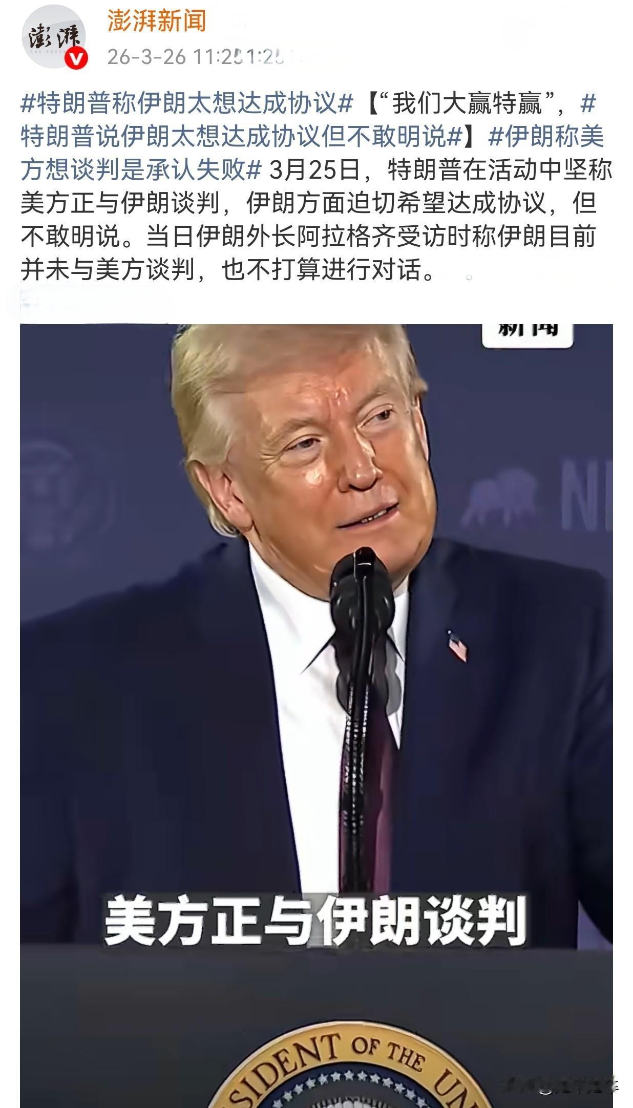 伊朗外长阿拉格齐在回应特朗普自称胜利者时反问其为何仍提议谈判,指出美国虽自诩胜利,却因未能实现任何目标而被迫请求谈判。伊朗方面认为,正是由于自身的顽强抵抗和坚定立场,才迫使美国转向外交途径。(是这样的,从板门店到关贸谈判还是大哥的经验丰富。速来大哥处取经书)