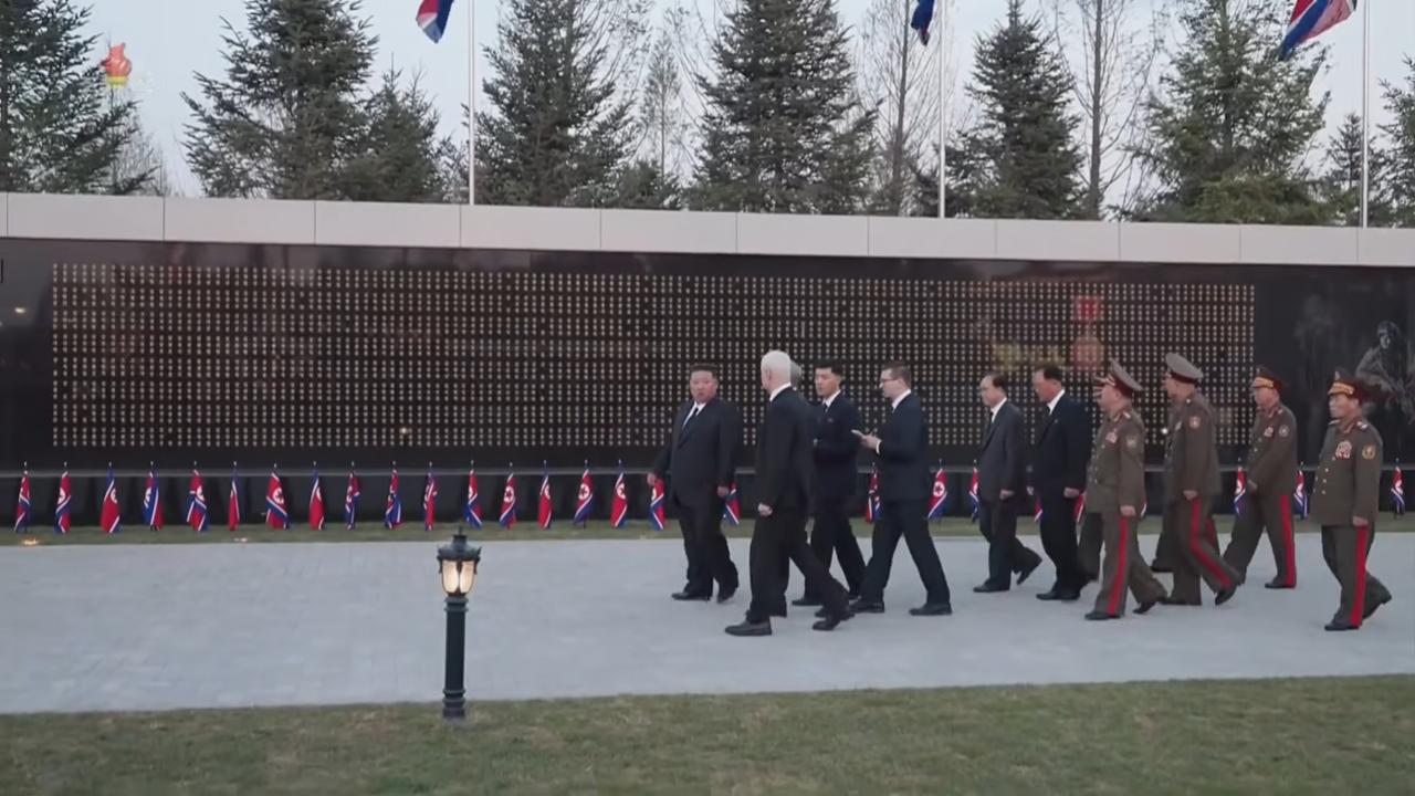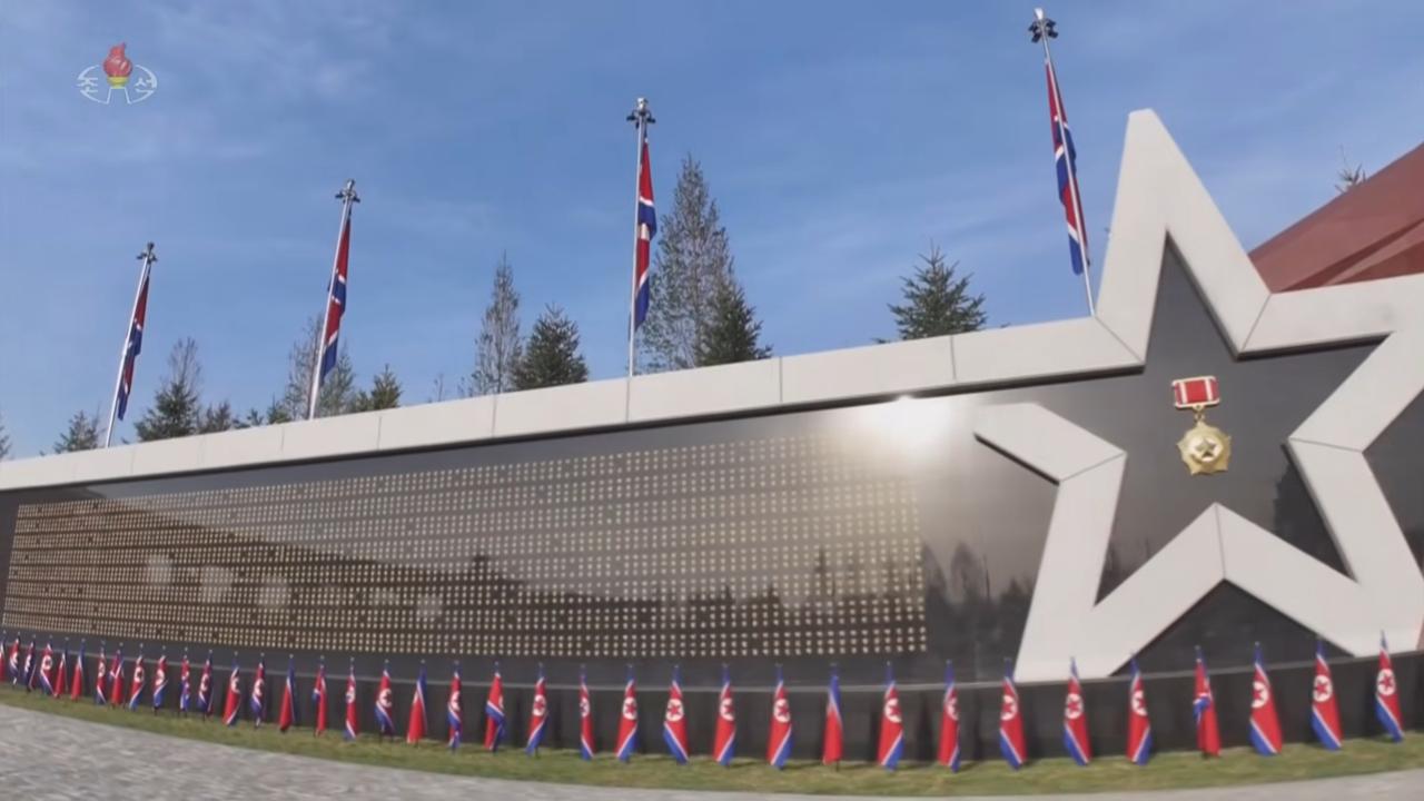 当地时间2026年4月27日,在朝鲜首都平壤的库尔斯克纪念馆,朝鲜军队的烈士墙证