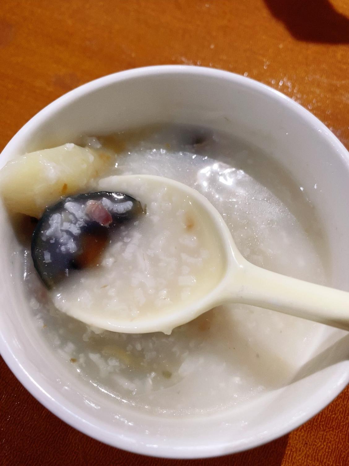粥底绵滑的秘密:冻米煮粥的意外惊喜,山芋皮蛋排骨粥新尝试