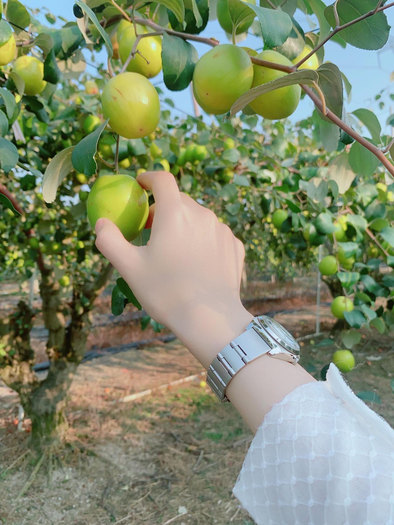 挑那种果皮透亮、带着一点点奶白色的,咬一口直接爆汁!脆嫩的果肉在嘴里咔嚓作响,清甜的汁水瞬间漫开,没有一点酸涩感,只有纯粹的果香,比超市买的新鲜太多了。边摘边吃,不一会儿就啃了好几个,连朋友都笑我“回本了”。