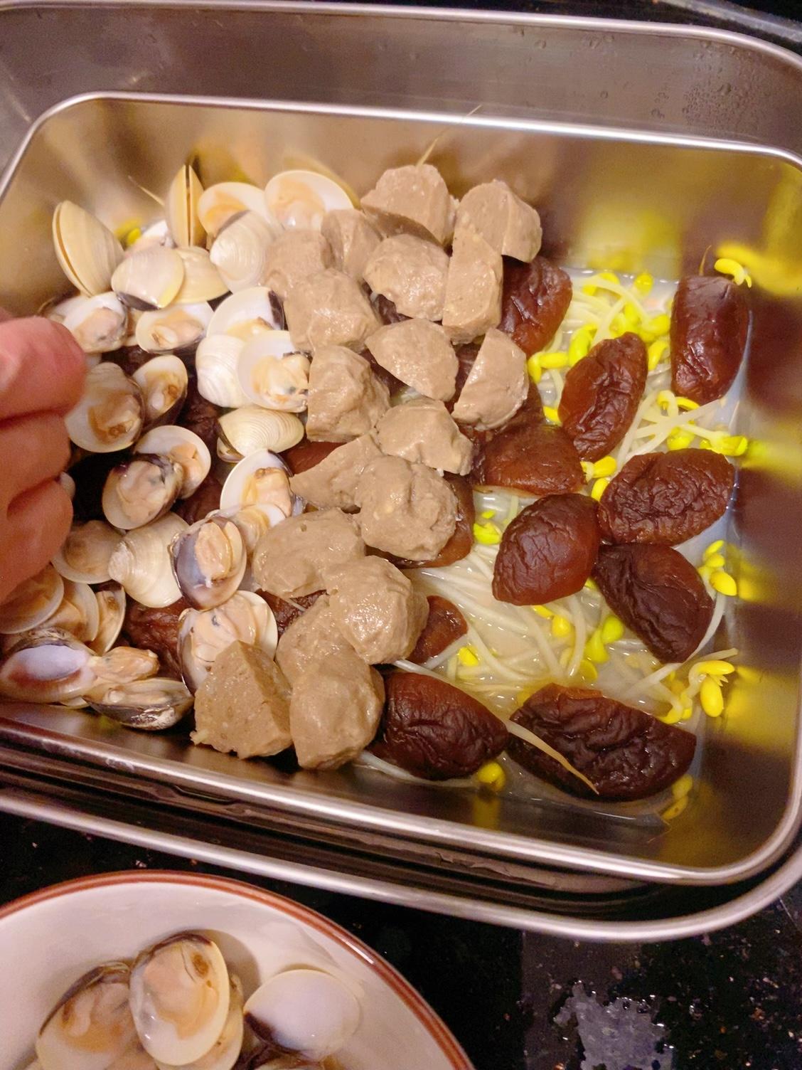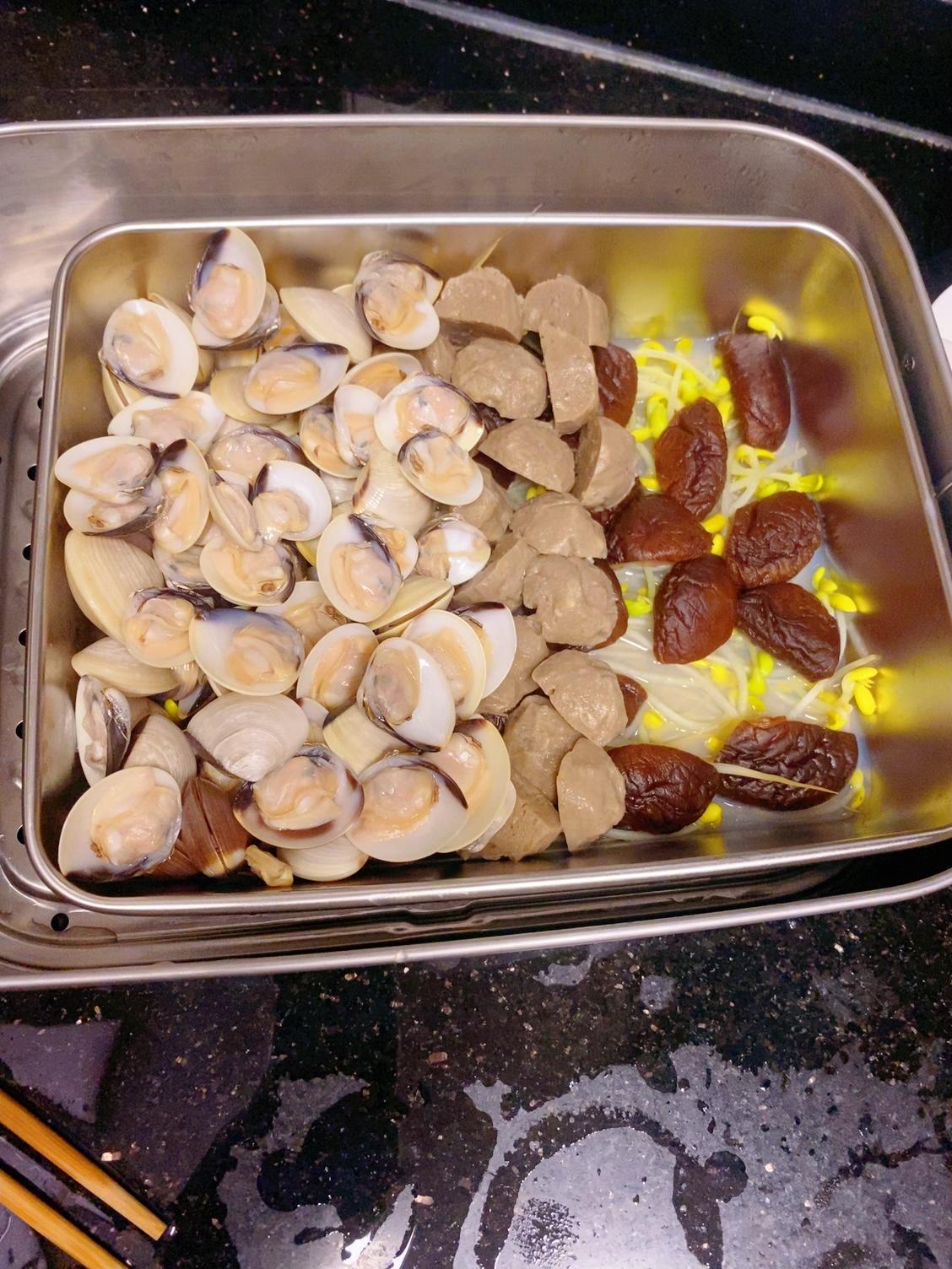 你看这白贝,个个都张着嘴,肉嫩得能掐出水来,一点沙都没有,一看就是提前吐沙吐得干干净净。还有这虾,煮得刚刚好,壳脆肉甜,虾线处理得干干净净,吃起来完全不费劲。中间还藏着几颗手工肉丸,吸满了海鲜的鲜味儿,一口下去全是惊喜。