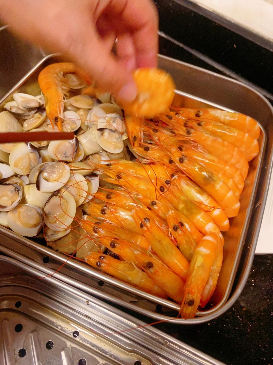 最戳我的不是菜有多好吃,是他做饭的样子。以前厨房是我的地盘,他连锅铲都碰得少,这次为了做这道菜,提前查了攻略,问了朋友,从挑海鲜、处理食材,到下锅煮、调味道,全程自己上手,连灶台都擦得干干净净。