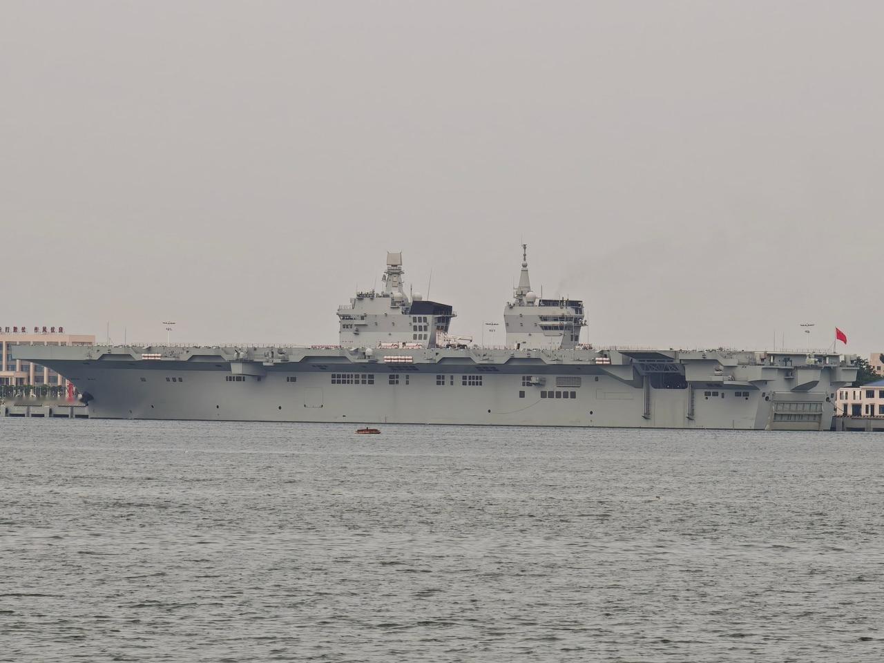 弹射型两栖攻击舰四川舰似乎正在对其电磁弹射器进行配重车弹射测试。在四川号的飞行甲