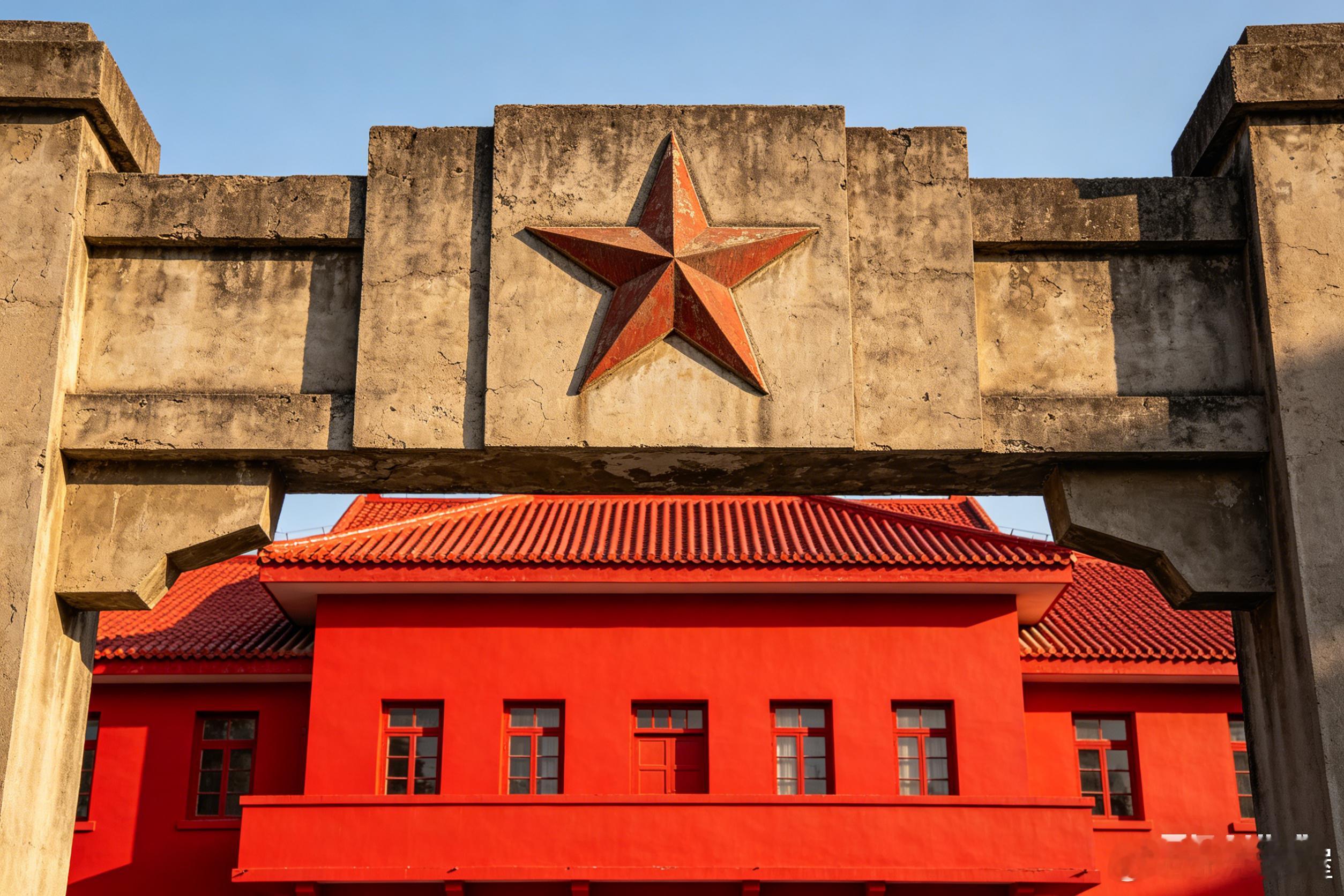 東流縣人民衛生院主题建筑是——仿苏联式的洋灰水泥牌楼上嵌一个硕大的五角星,坐北朝南的两层红色主体建筑,鲜艳的红墙亮瓦格外显眼。