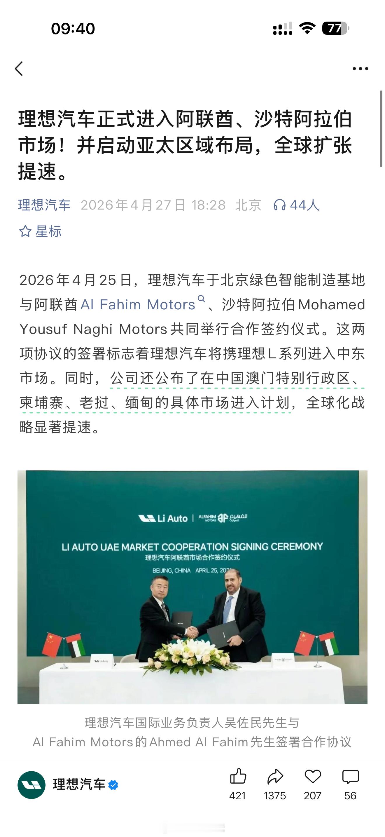 头顶一块布,全球我最富,哈哈,理想要去中东地区给友人们感受一下中国汽车新势力的实力了,中东市场妥当之后,就是亚太市场澳门、柬埔寨等地区也有市场进入计划,理想终于开始自己的全球化布局了,好事情啊,不过人员上一定要仔细选啊🤔毕竟兵熊熊一个,将熊熊一窝理想汽车理想l9 livis全新一代理想l9