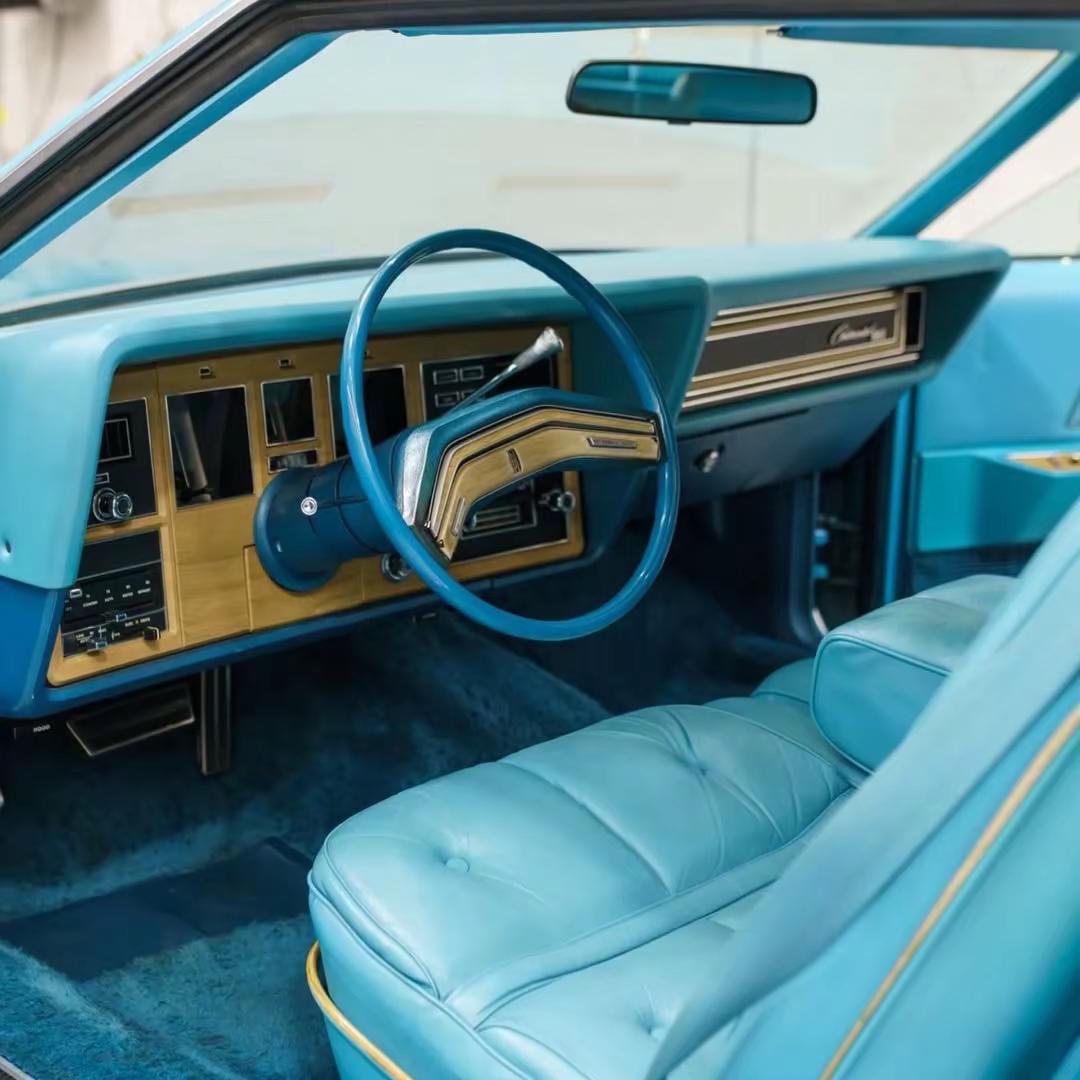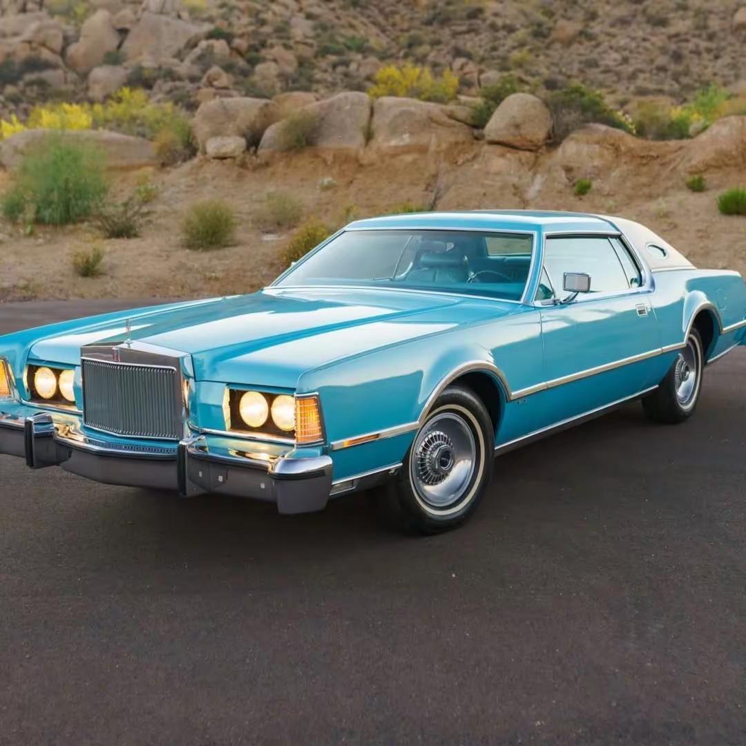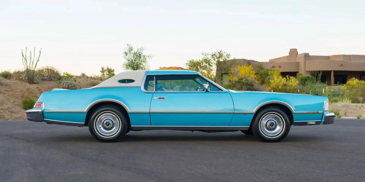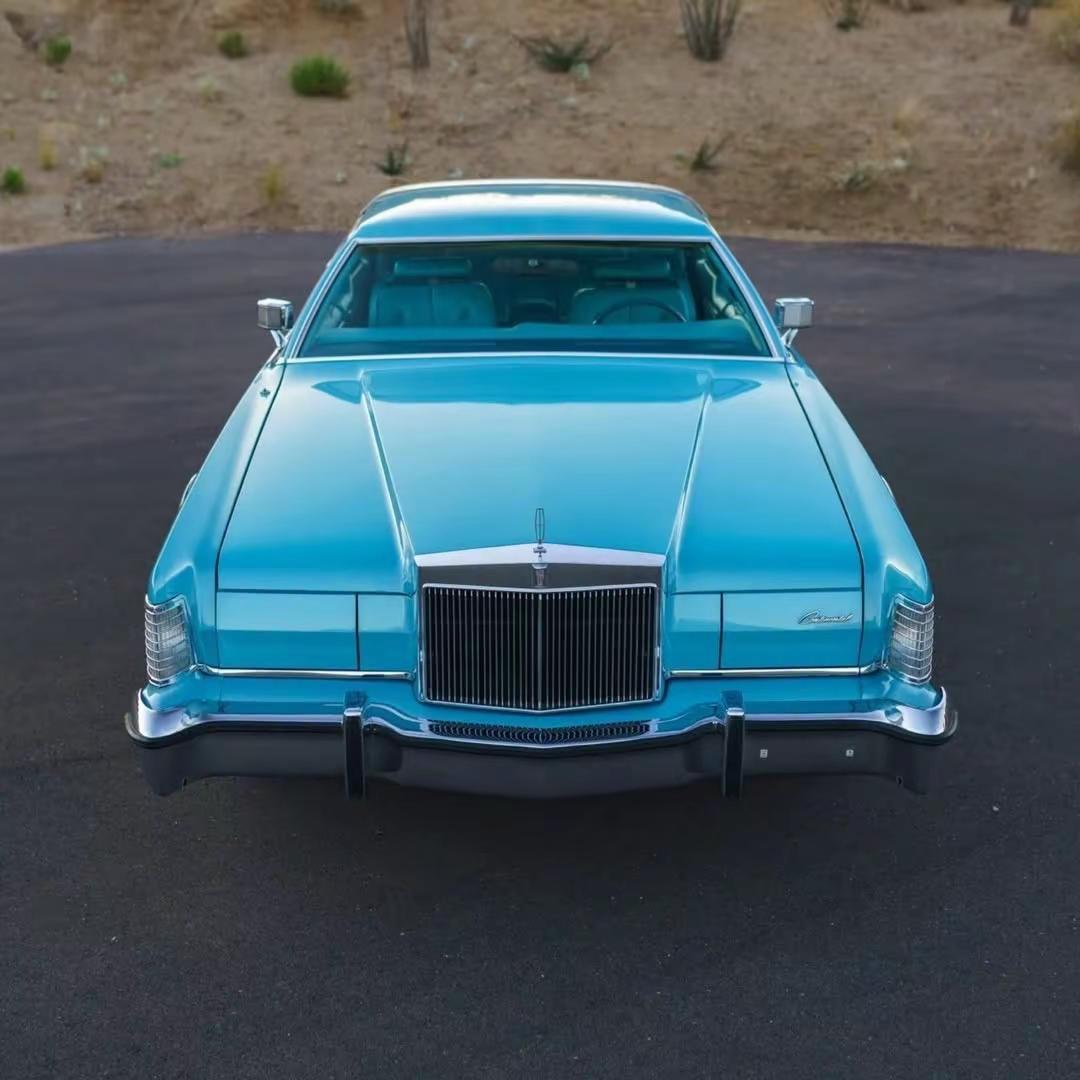 Lincoln Continental.台 1976 款 Lincoln Continental Mark IV Givenchy Edition,是当年仅有 1,573 台的特别版车型之一,如今表显里程仅 3.8 万英里,约 6.1 万公里,状态在同年代美式豪华车中相当少见。车身采用 Aqua Blue Diamond Fire 车漆,搭配 Aqua 蓝色真皮内饰,并配有 White Normande Landau 白色乙烯基车顶,整车气质典雅、张扬,又带着强烈的年代标识。动力方面,它搭载一台 460 立方英寸 V8 发动机,约 7.5 升,匹配 C-6 三速自动变速箱,这样的组合并不追求速度的激进,而更强调那种从容、厚重、带一点“美式游艇感”的巡航体验。配置上,这台车延续了 70 年代顶级美式豪华轿跑的完整表达:白色车身饰条、15 英寸锻造铝合金轮圈、助力盘式刹车、电动车窗、电动三角窗、八轨卡带播放器以及自动空调,每一项都在诉说那个年代对“豪华”二字的理解——不是科技堆砌,而是一种近乎夸张的舒适与体面。1970 年代中后期,正是美国大排量豪华车文化的尾声,Lincoln Continental Mark IV 也因此成为那个时代的一个缩影:它不只是交通工具,更像是身份、审美和时代情绪的共同载体。今天再看,这类车最迷人的地方,不在于性能数据,而在于它把一个汽车最讲究“气场”的年代,完整留了下来。林肯 经典情怀老车 汽车文化 美国复古车