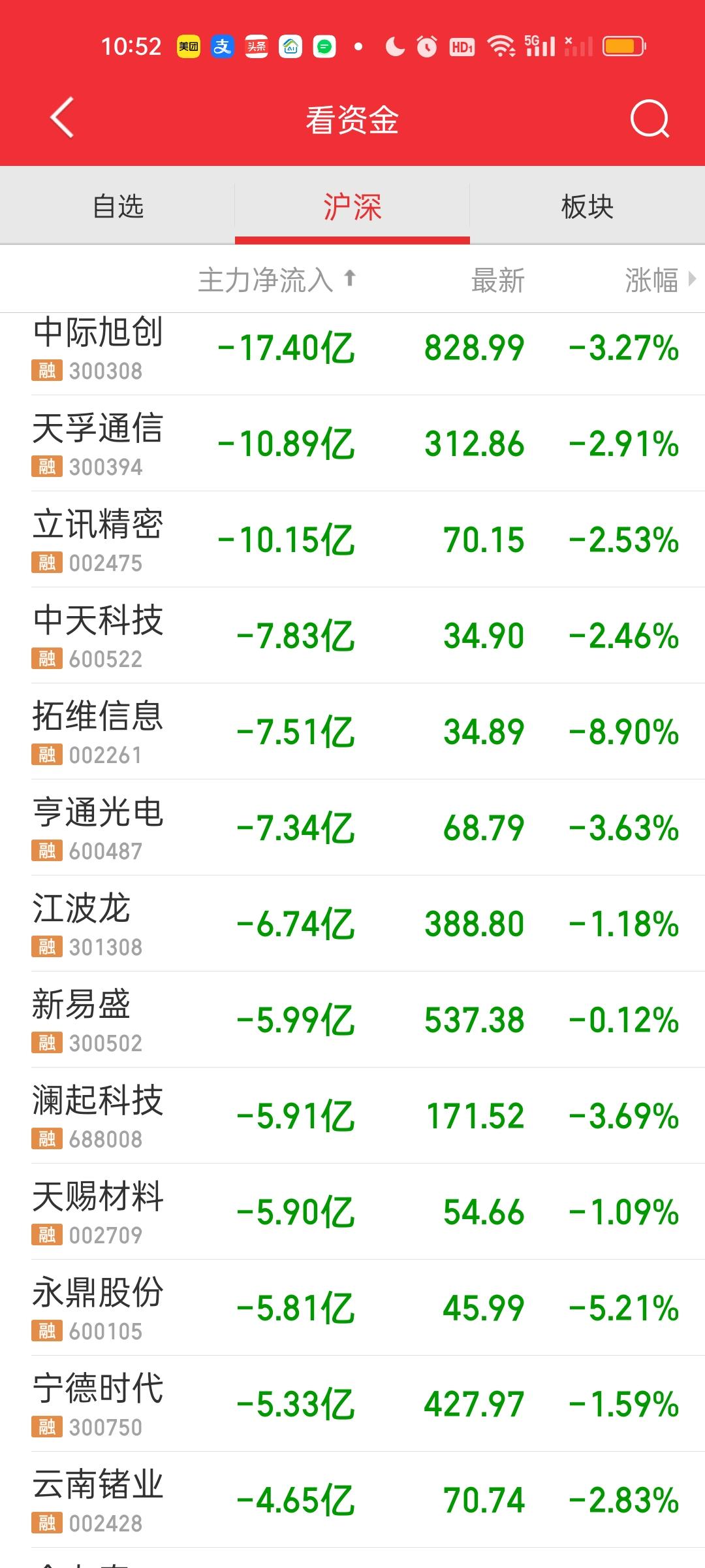 今天别看指数没怎么跌,但个股的杀伤力是很大的。仅仅一个多小时大盘资金净流出了52