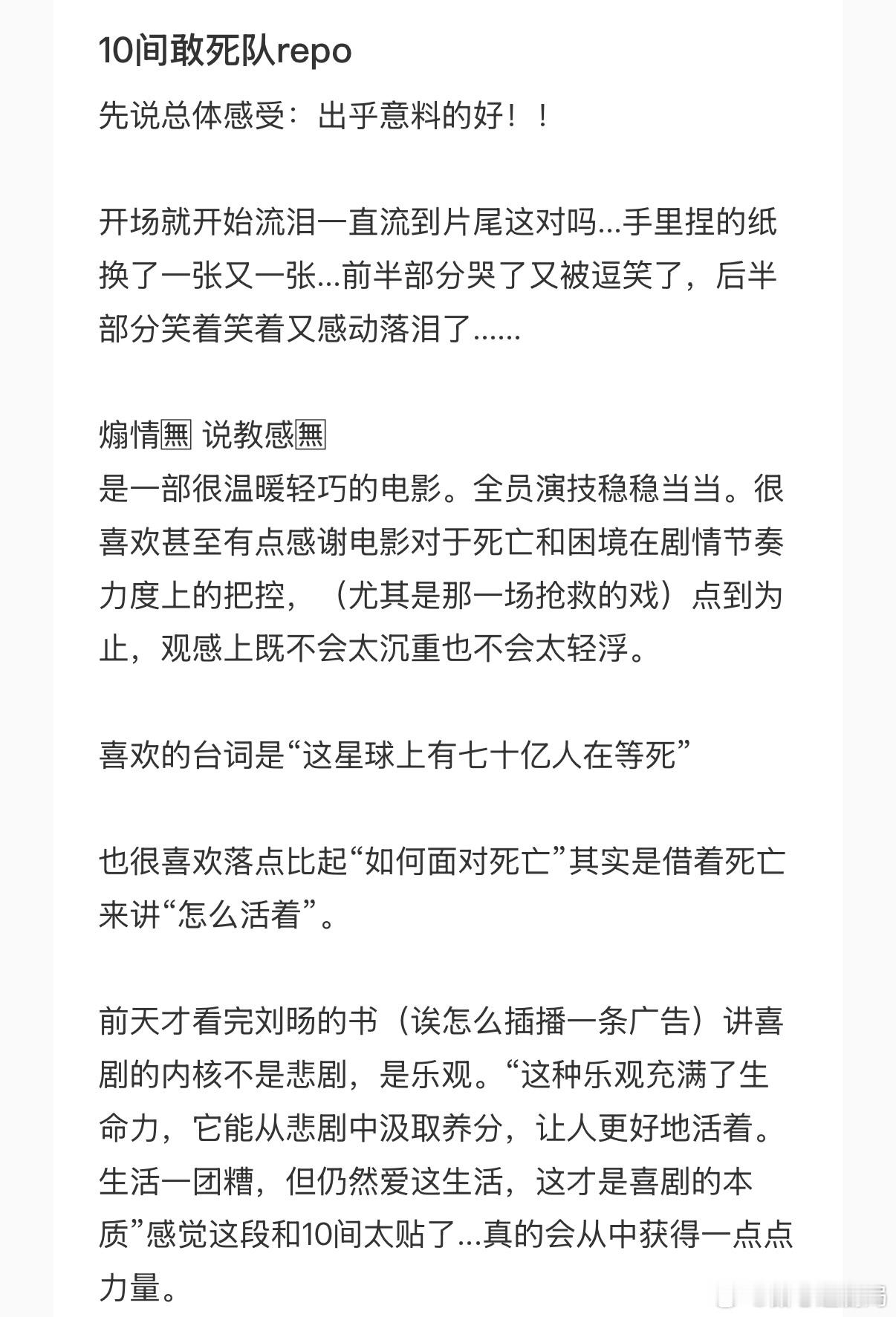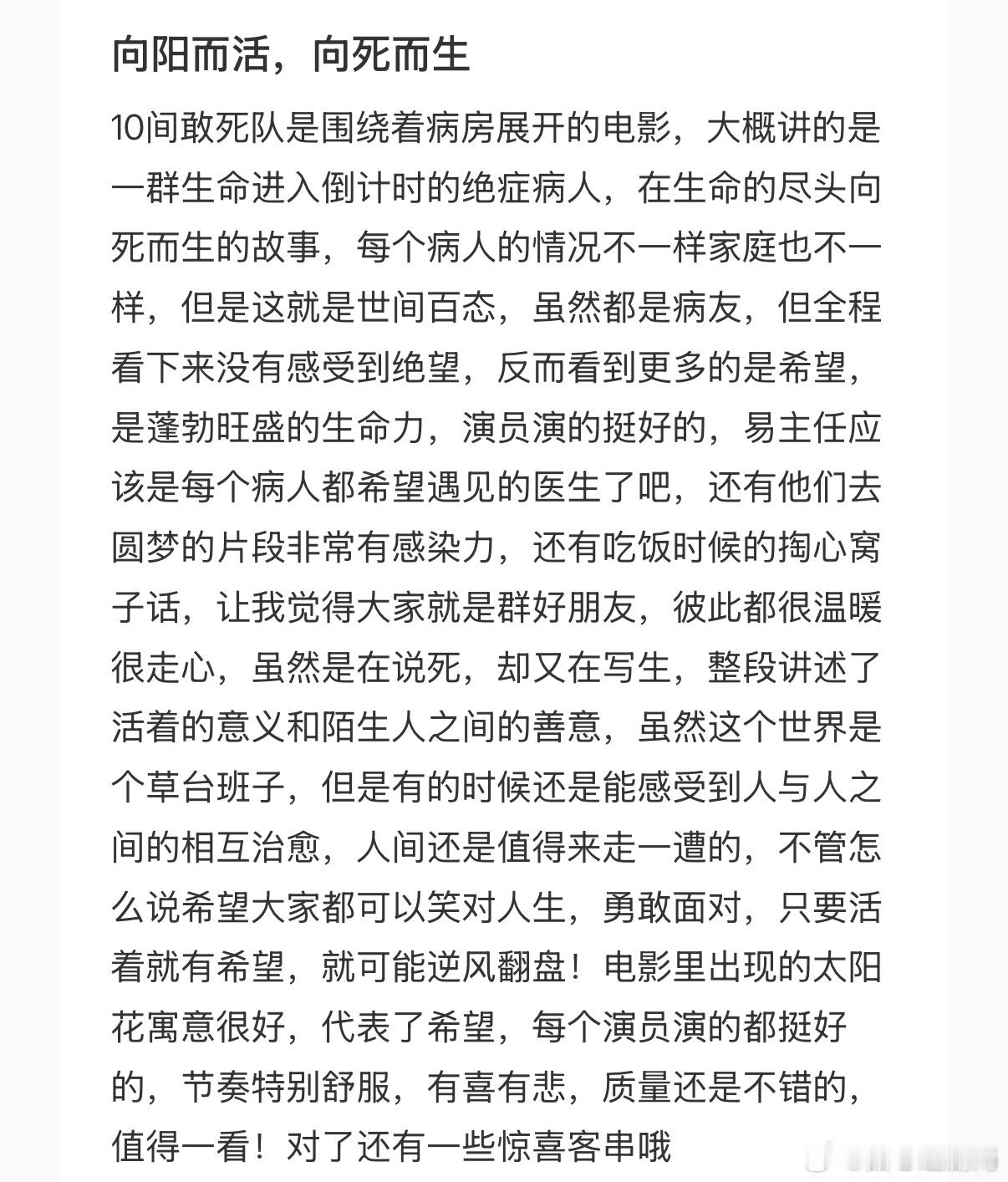 陈思诚新片好鲜活的群像五一喜剧首选《10间敢死队》!全员人设鲜明可爱,杨超越化身活力观察员,老戏骨反差超搞笑。故事温暖有力量,观众笑中带泪,看完满满正能量,预售已冲期待上映!