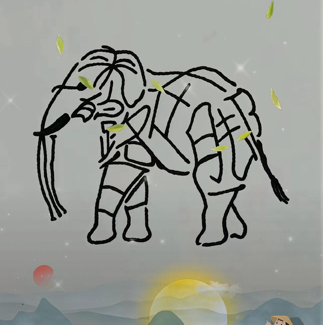看完请看一下图中画面。猜大象身上,隐藏几个字组成。