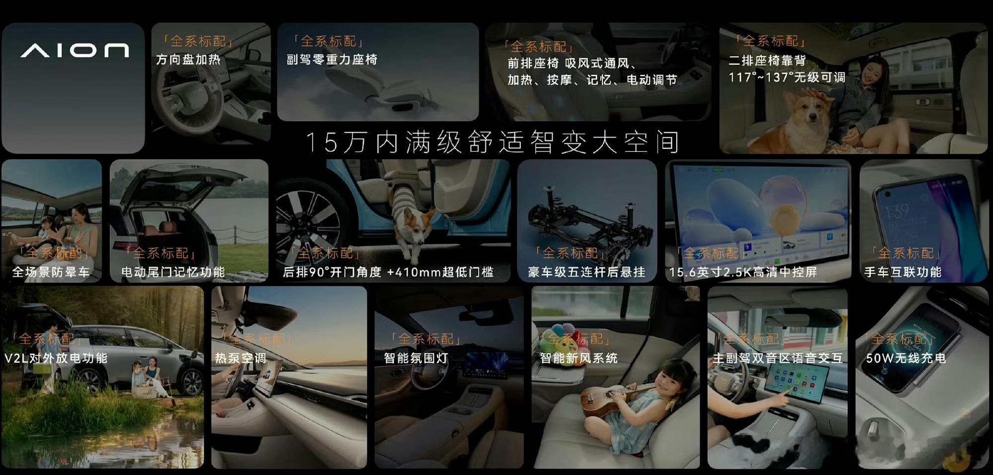 埃安N60作为行业首个全系超配的国民好车,27项高价值配置,101项主流配置,128项全系标配,重塑15万内SUV价值标杆。全系标配广汽星灵智行ADiGO GSD3.0+文远知行L4级同源一段式端到端大模型,激光雷达+4D毫米波雷达硬件配置拉满,全场景智能驾驶辅助有路就能开。宽适车内空间得房率75.3%,同级唯一副驾零重力座椅全系标配,豪车级五连杆独悬,让你坐得舒服,开得稳当。