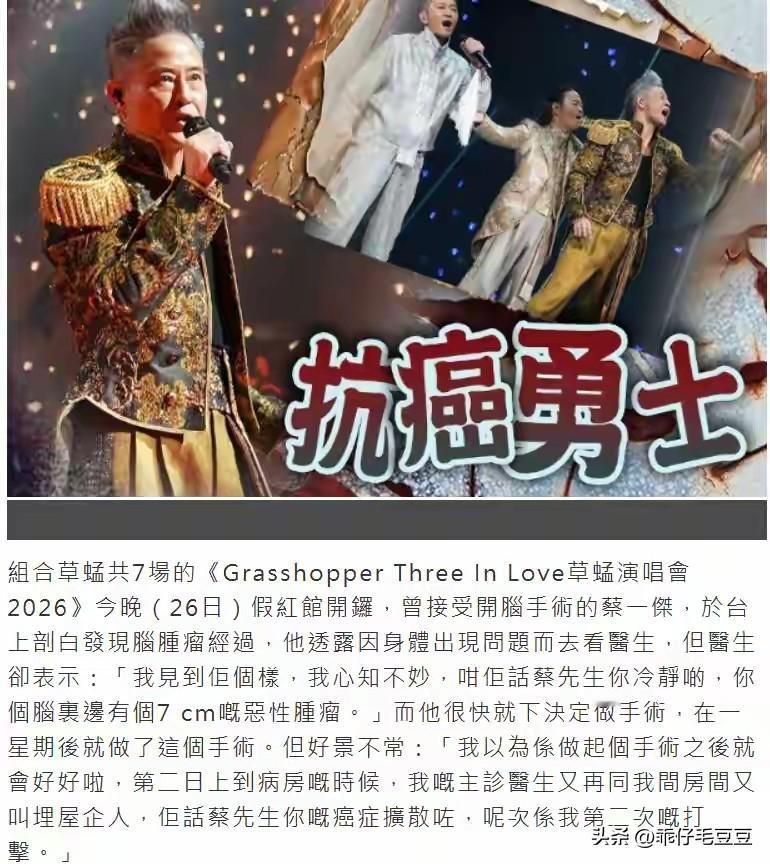 草蜢组合蔡一杰癌症复发,开演唱会多名圈中好友捧场,陈奕迅更是充当开场嘉宾!