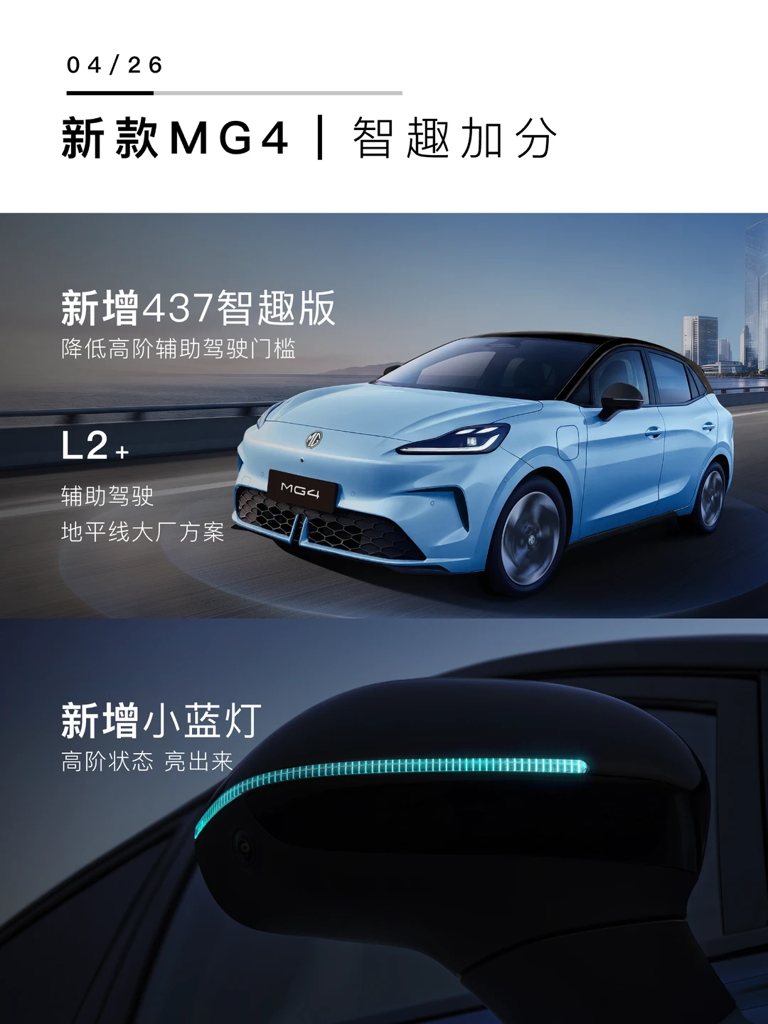 配置选择方面,建议从437自由版看起,最推荐的还是437智趣版,升级高阶辅助驾驶配小蓝灯,高速上省的精力就值回票价,经常跑长途的直接上530智趣,MG4续航达成的口碑一直不错