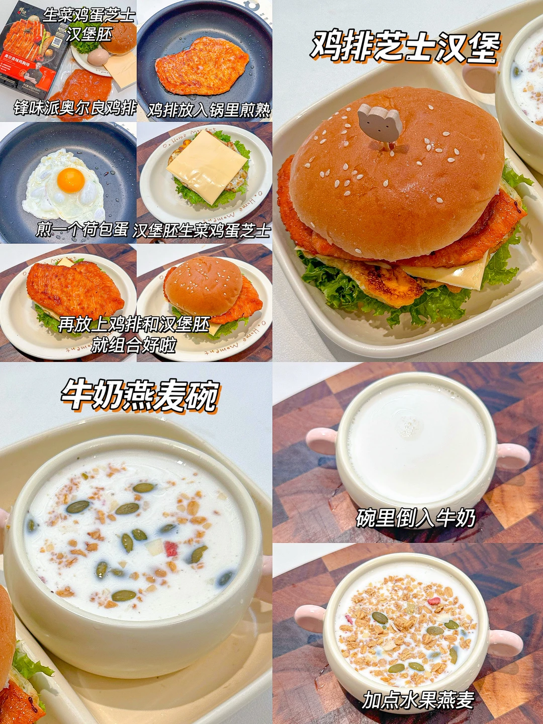 🌟鸡排芝士汉堡+牛奶燕麦碗🍔