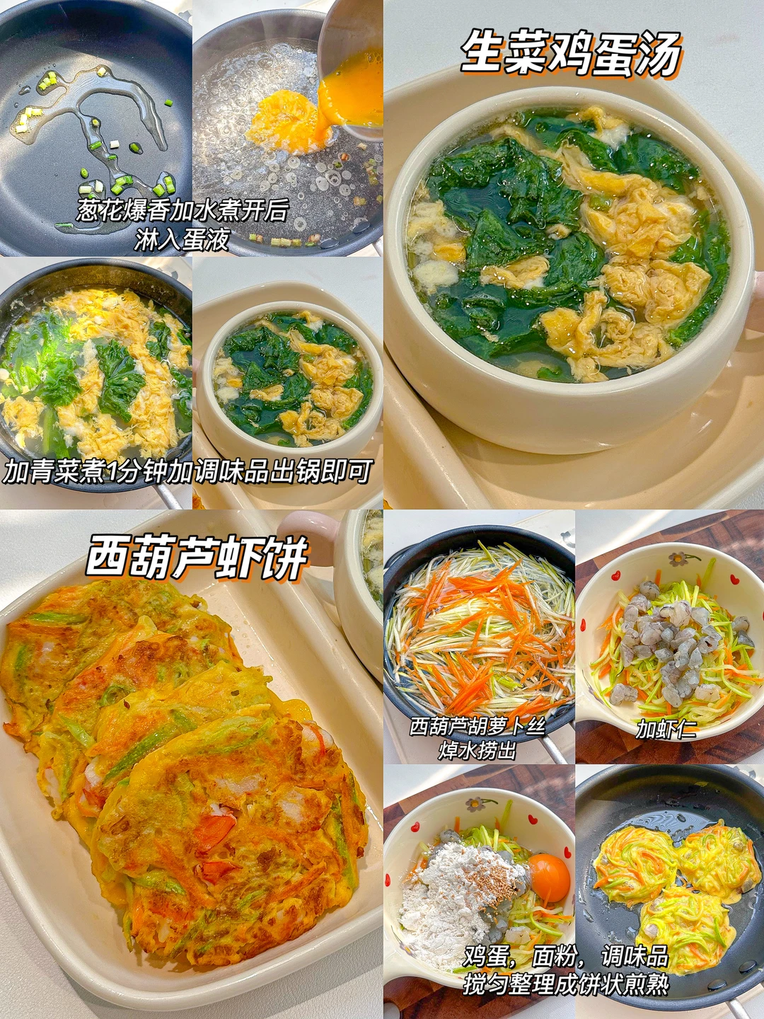 🌟西葫芦虾饼+生菜鸡蛋汤🦐
