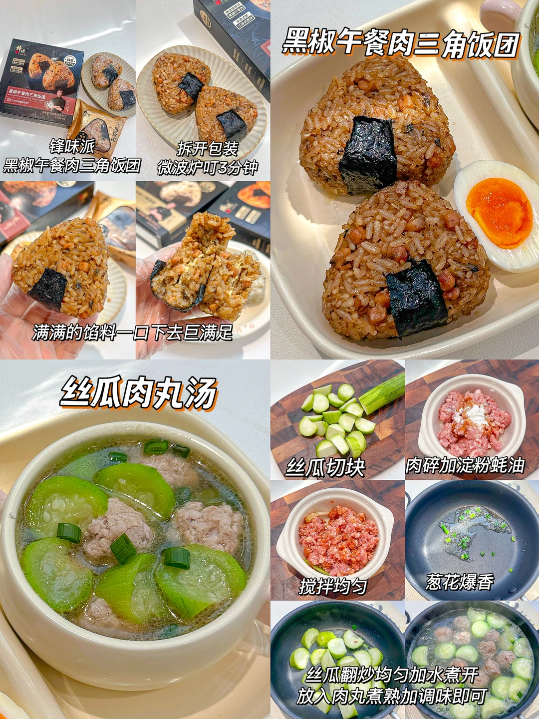 🌟黑椒午餐肉三角饭团+丝瓜肉丸汤🍙