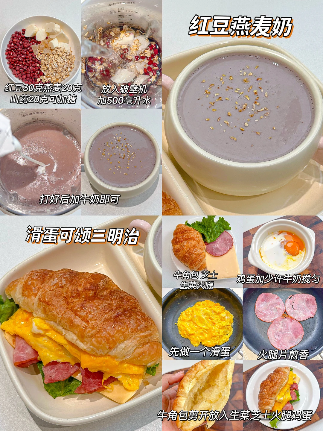 🌟滑蛋可颂三明治+红豆燕麦奶🥐