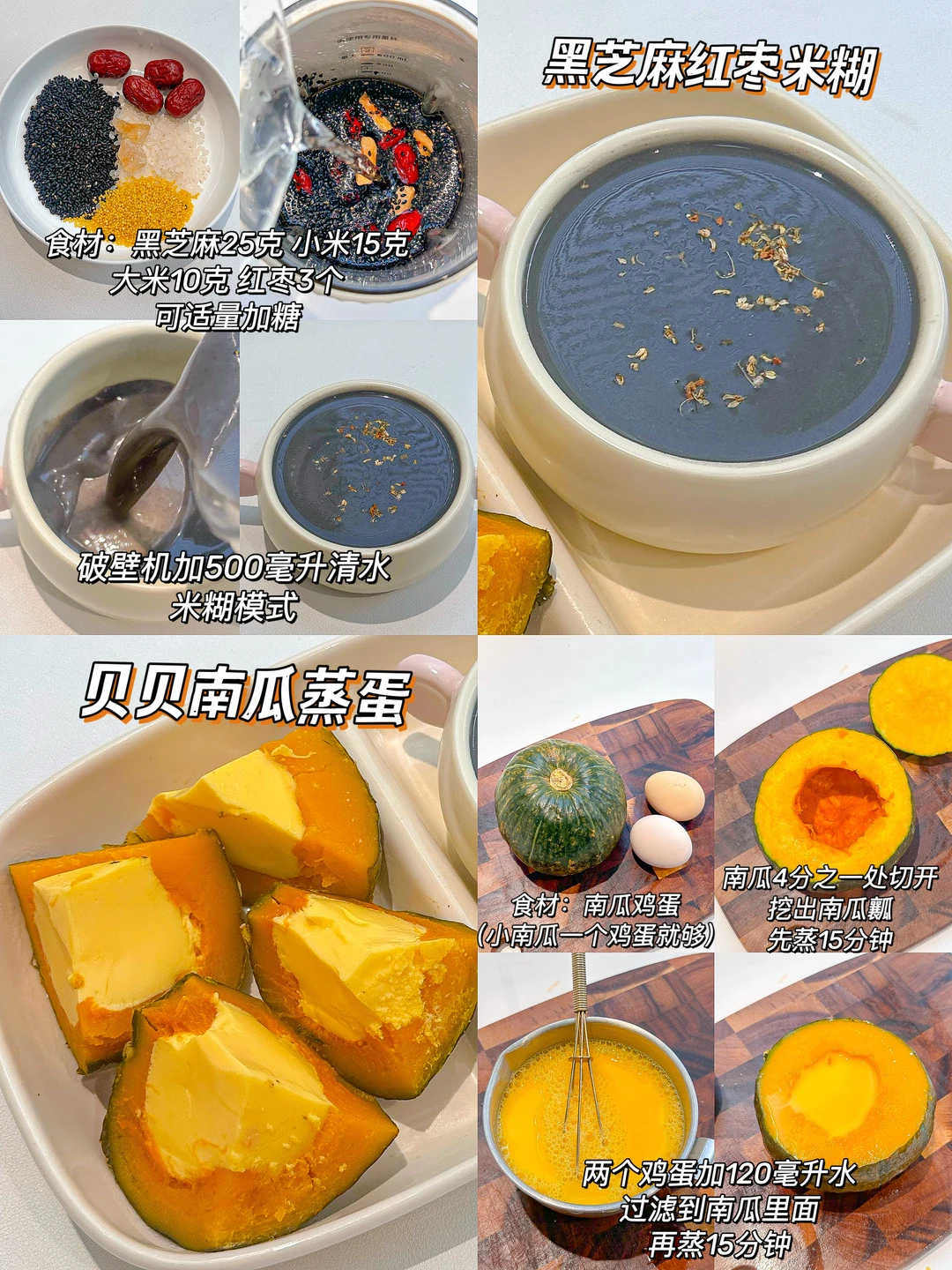 🌟贝贝南瓜蒸蛋+黑芝麻红枣米糊🎃