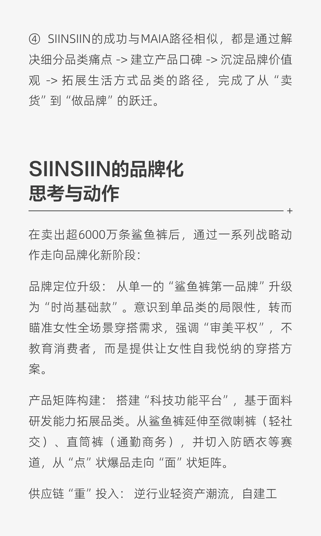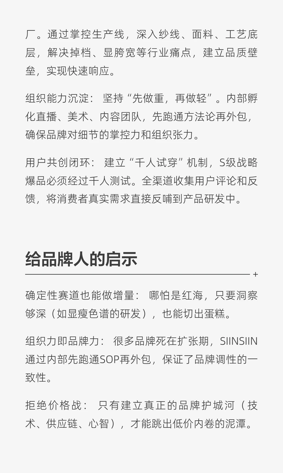 SIINSIIN从“流量收割”转向“产品主义”,通过自建工厂和“千人试穿”机制,解决痛点并建立品牌心智。从单一爆品到全场景穿搭,SIINSIIN成为时尚基础款,展现了品牌化思考与战略升级。