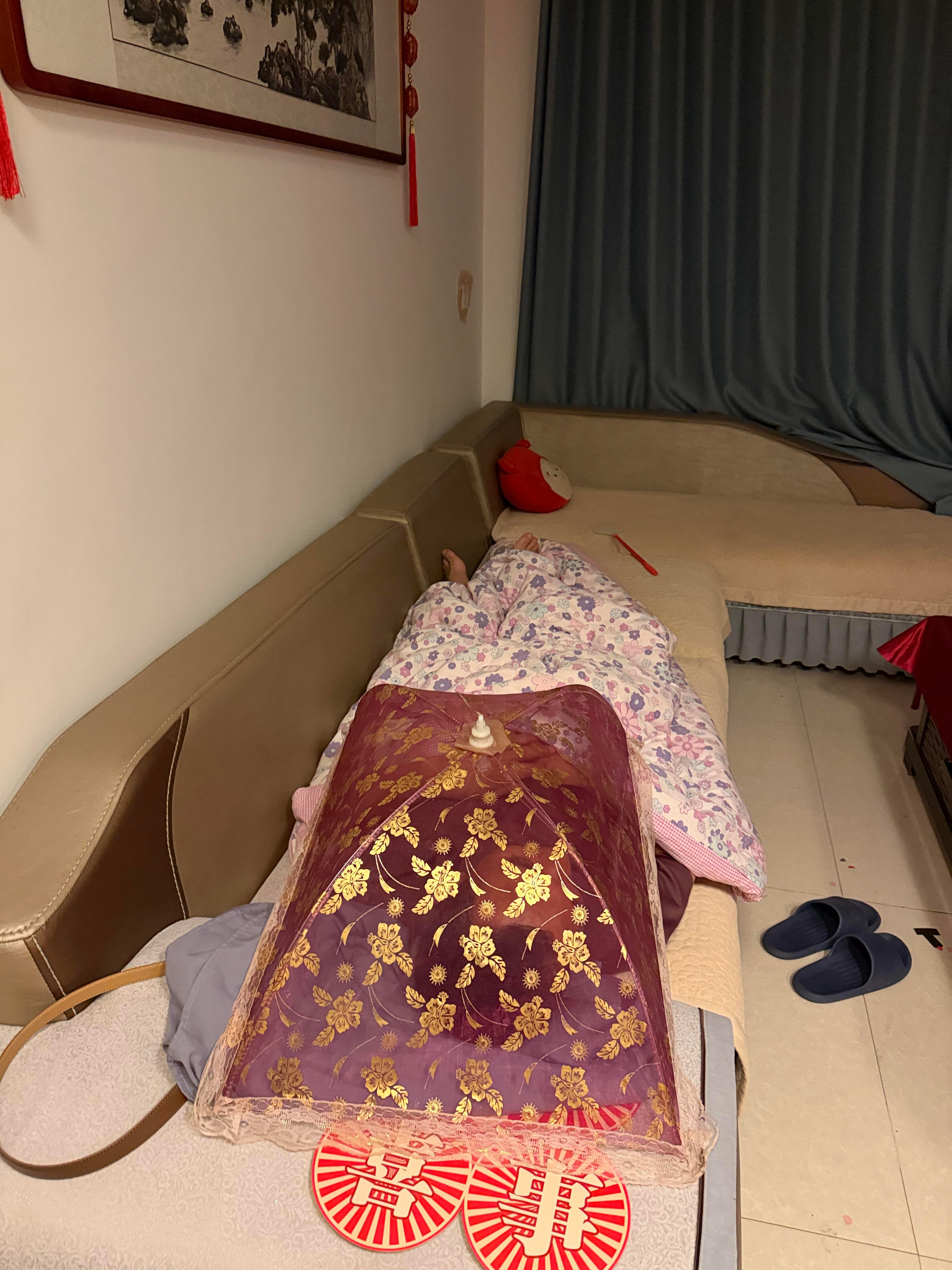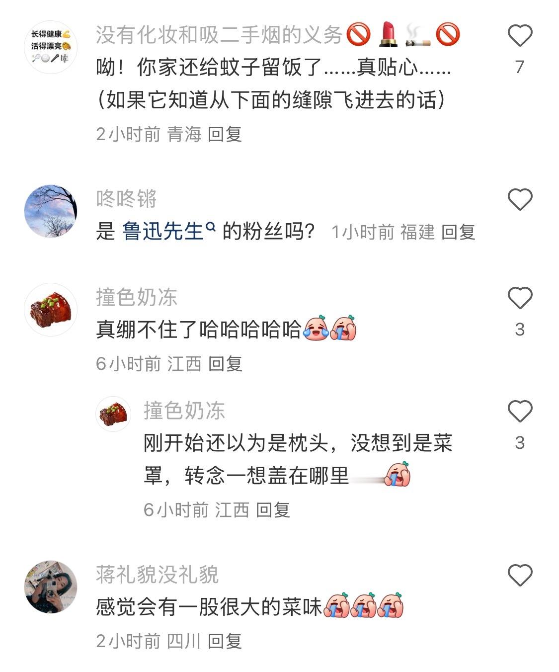 妈妈怕爸爸被蚊子咬给他扣了菜罩