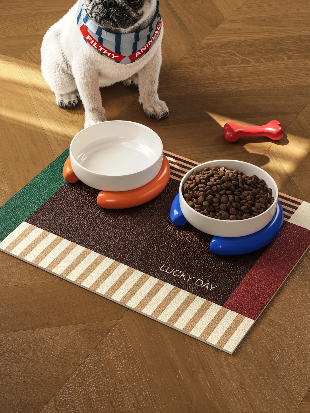直到挖到这张复古撞色餐垫,直接把狗狗食堂的氛围感拉满!
