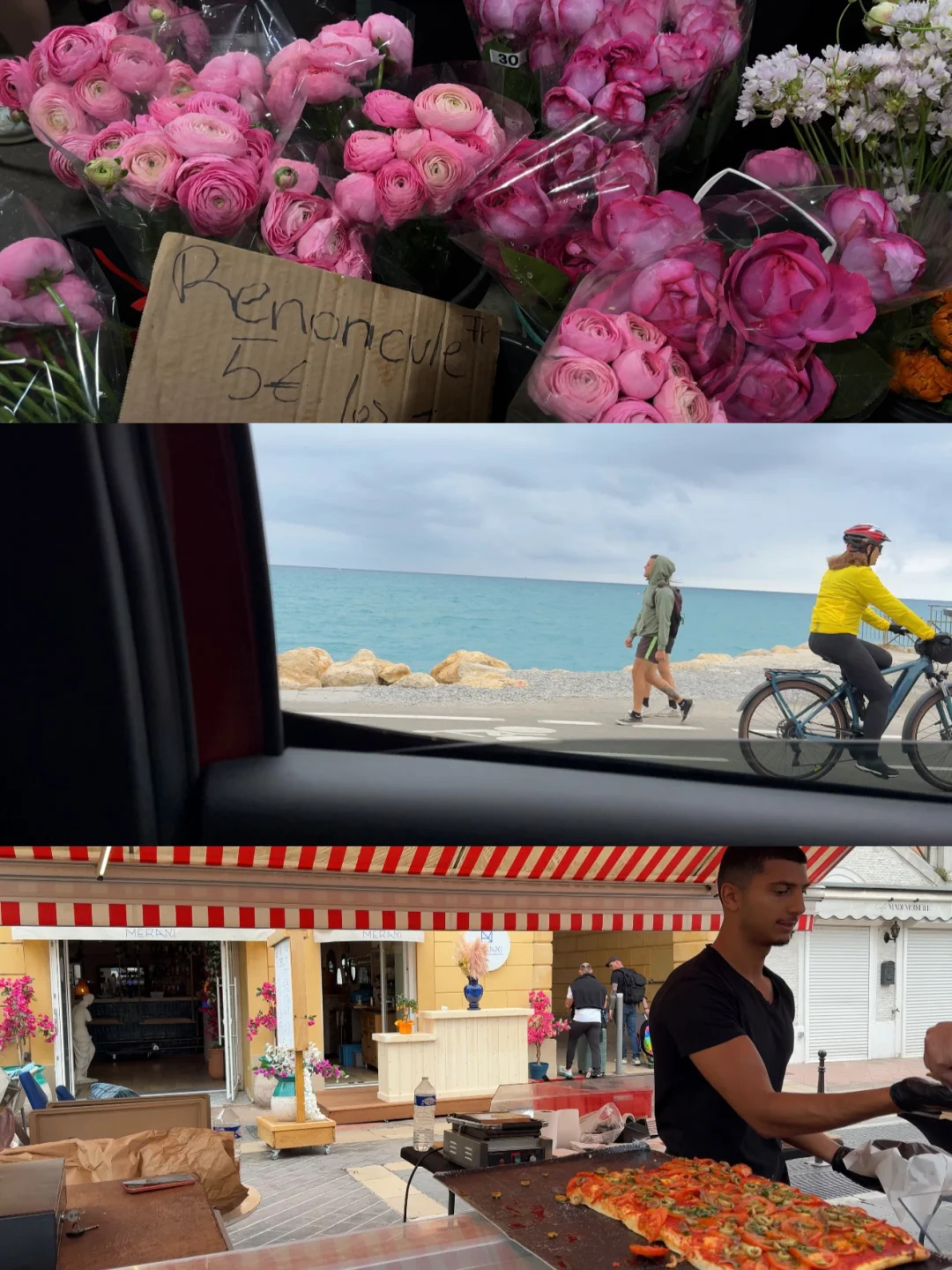 阴天没看到闪闪发光的尼斯蓝色海面有点遗憾,早上尼斯集市转了一圈,到昂蒂布吃到了好吃的法甜,吃的时候下起了小雨,雨晴到戛纳遇上保时捷比赛封路,辗转到摩纳哥f1比赛也封路,还是乖乖到巴黎机场,回国工作去吧🔚